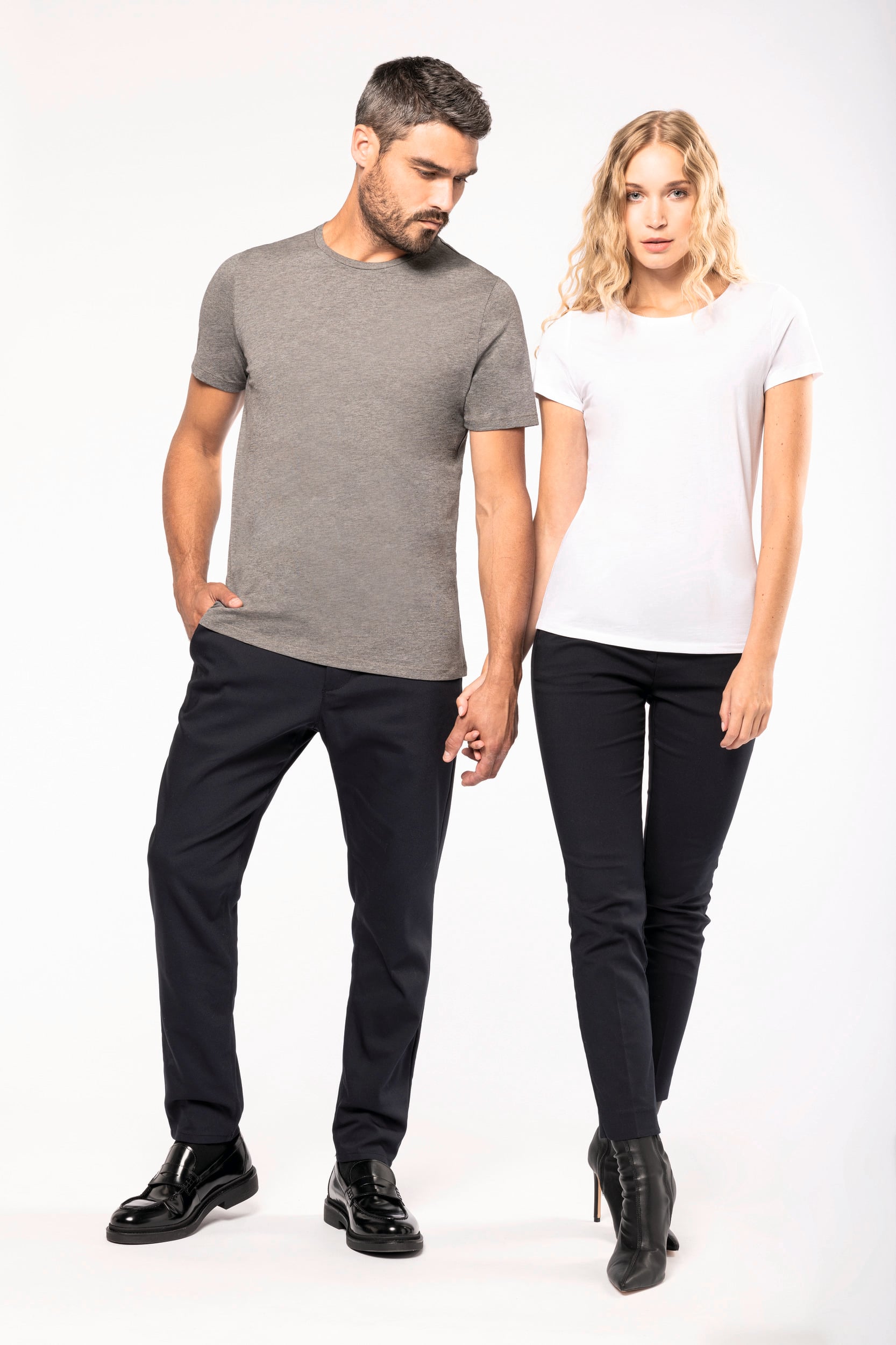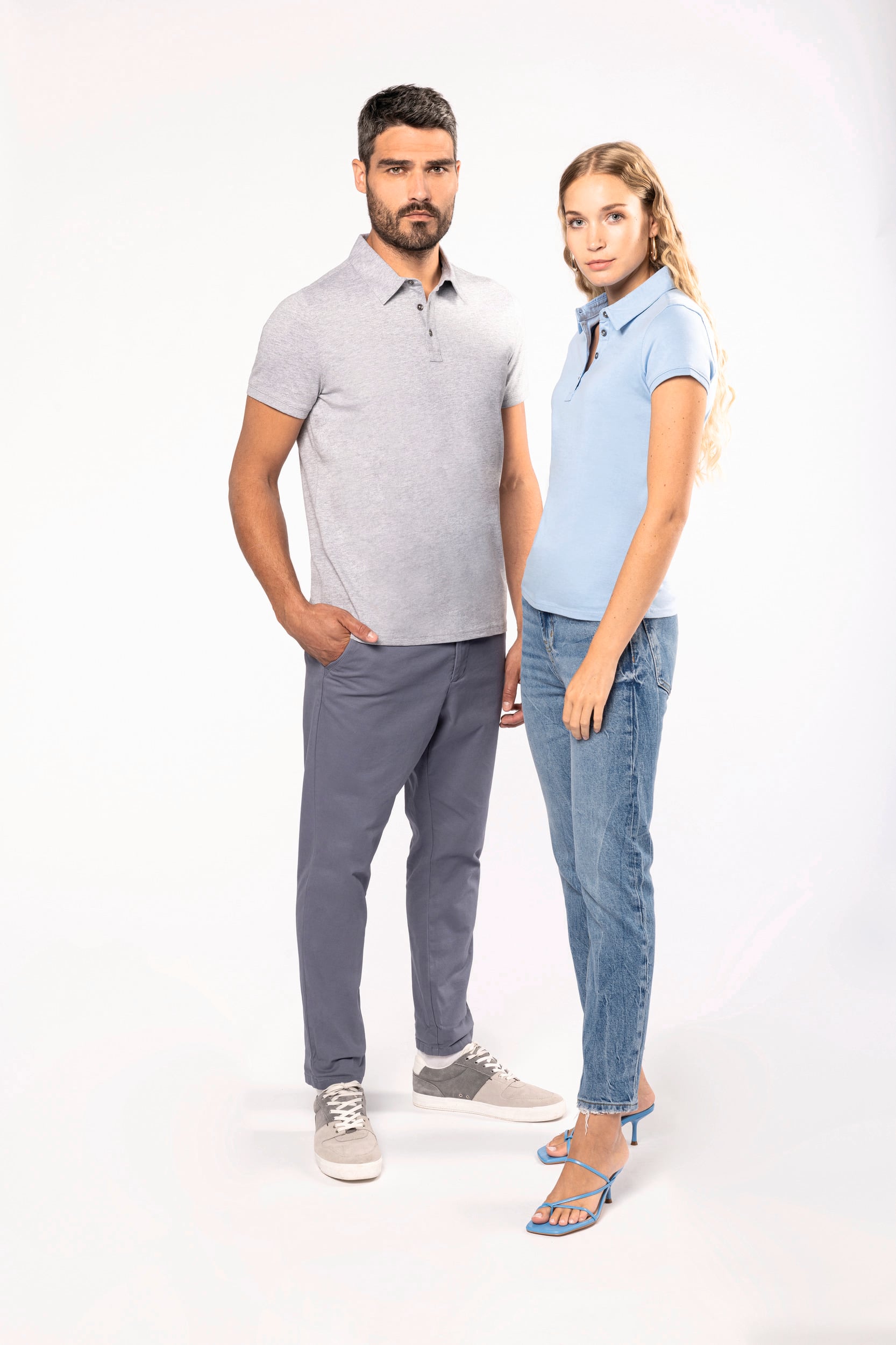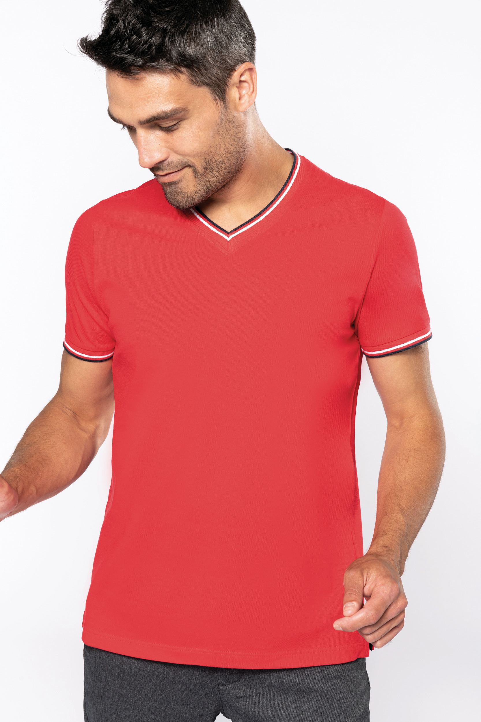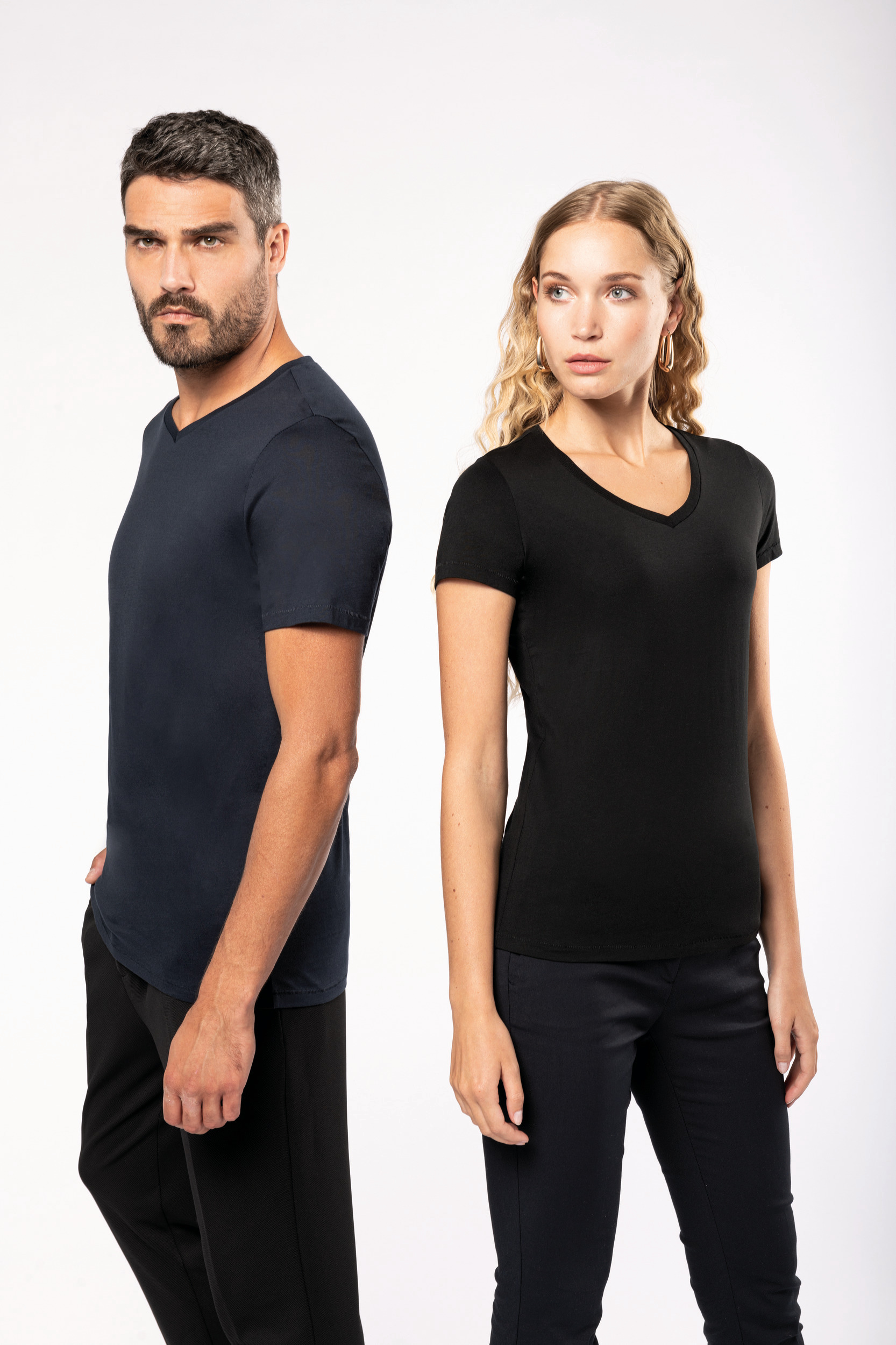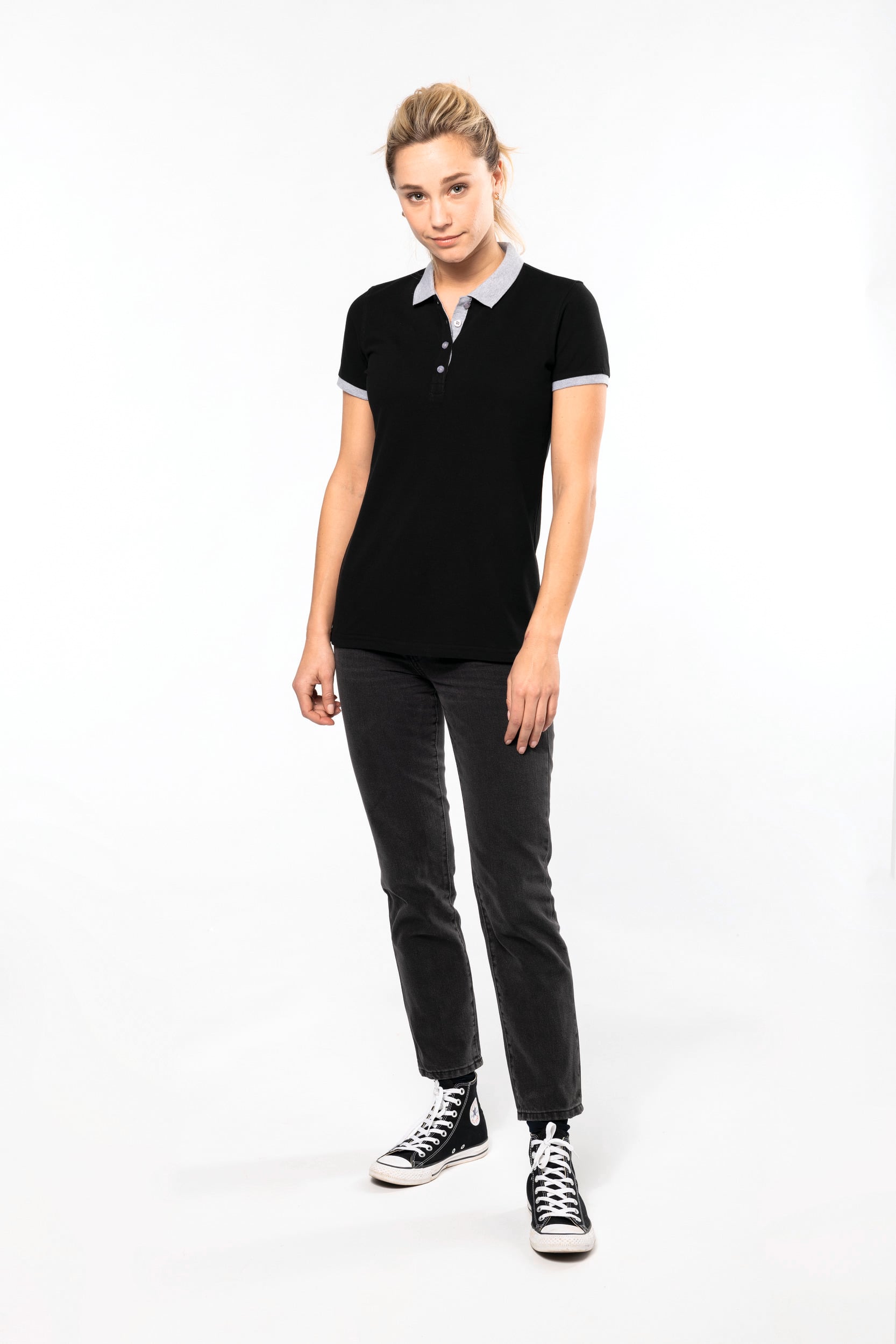 Camiseta de punto piqué con cuello de pico de mujer Manga corta