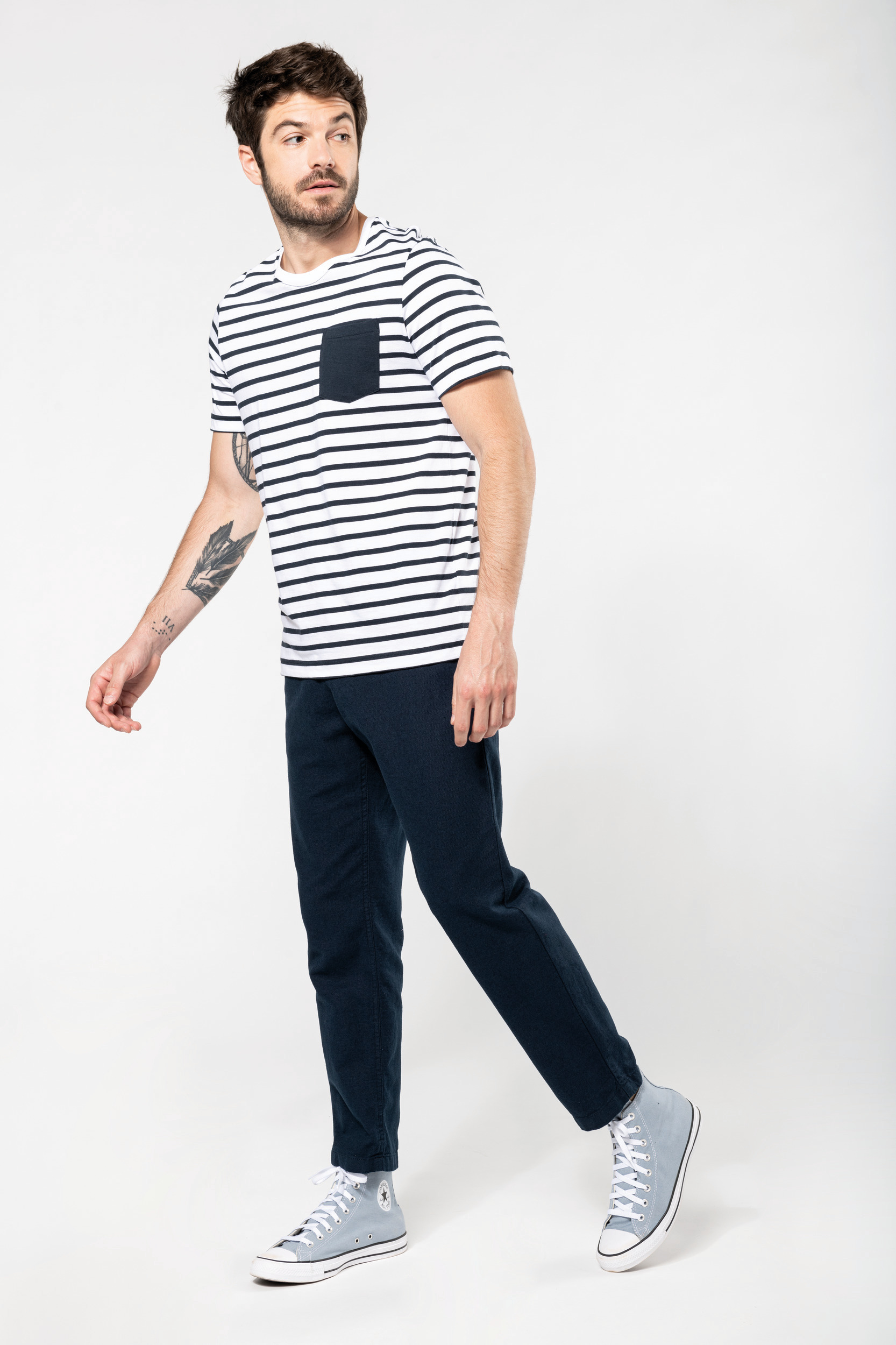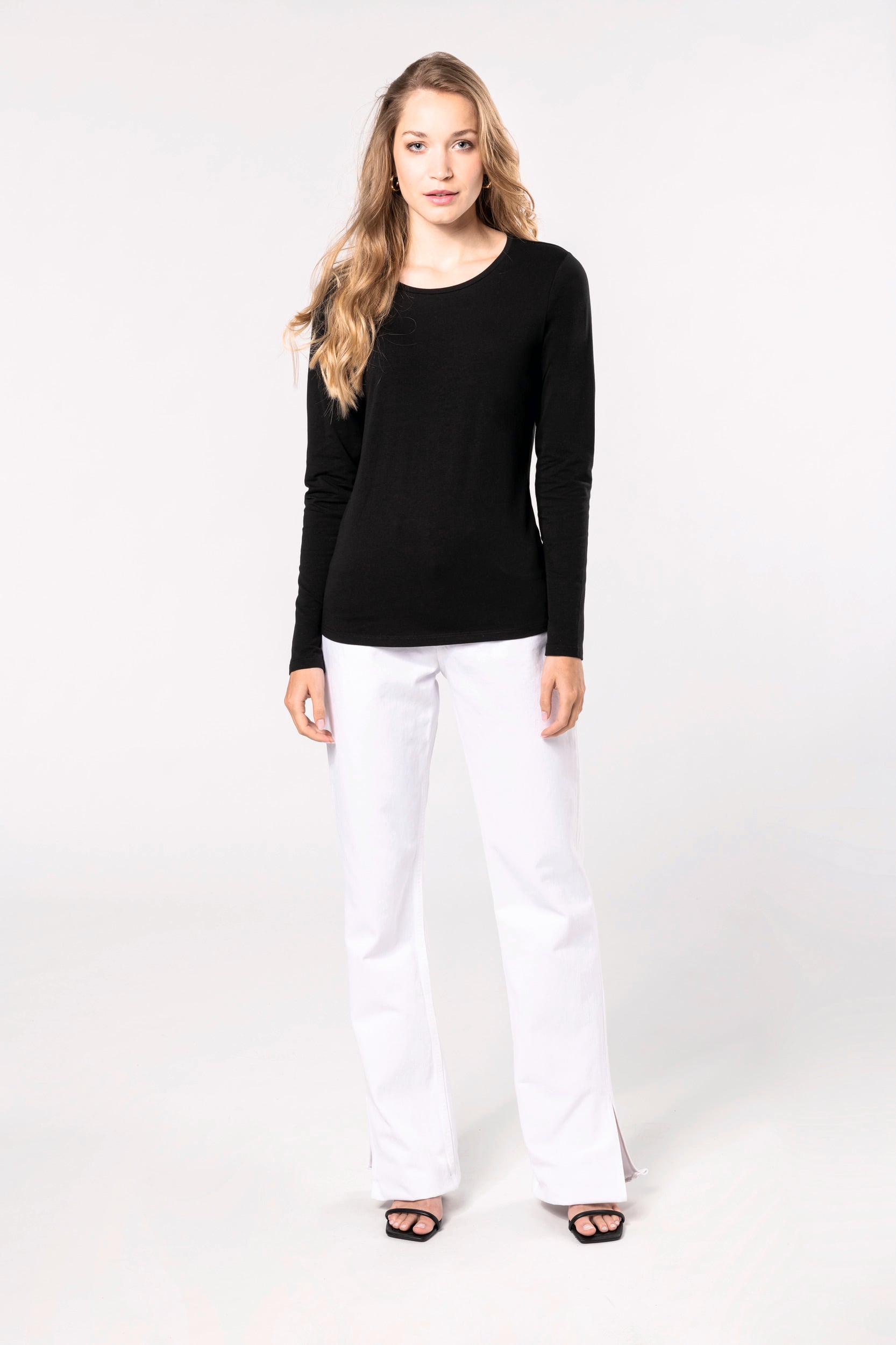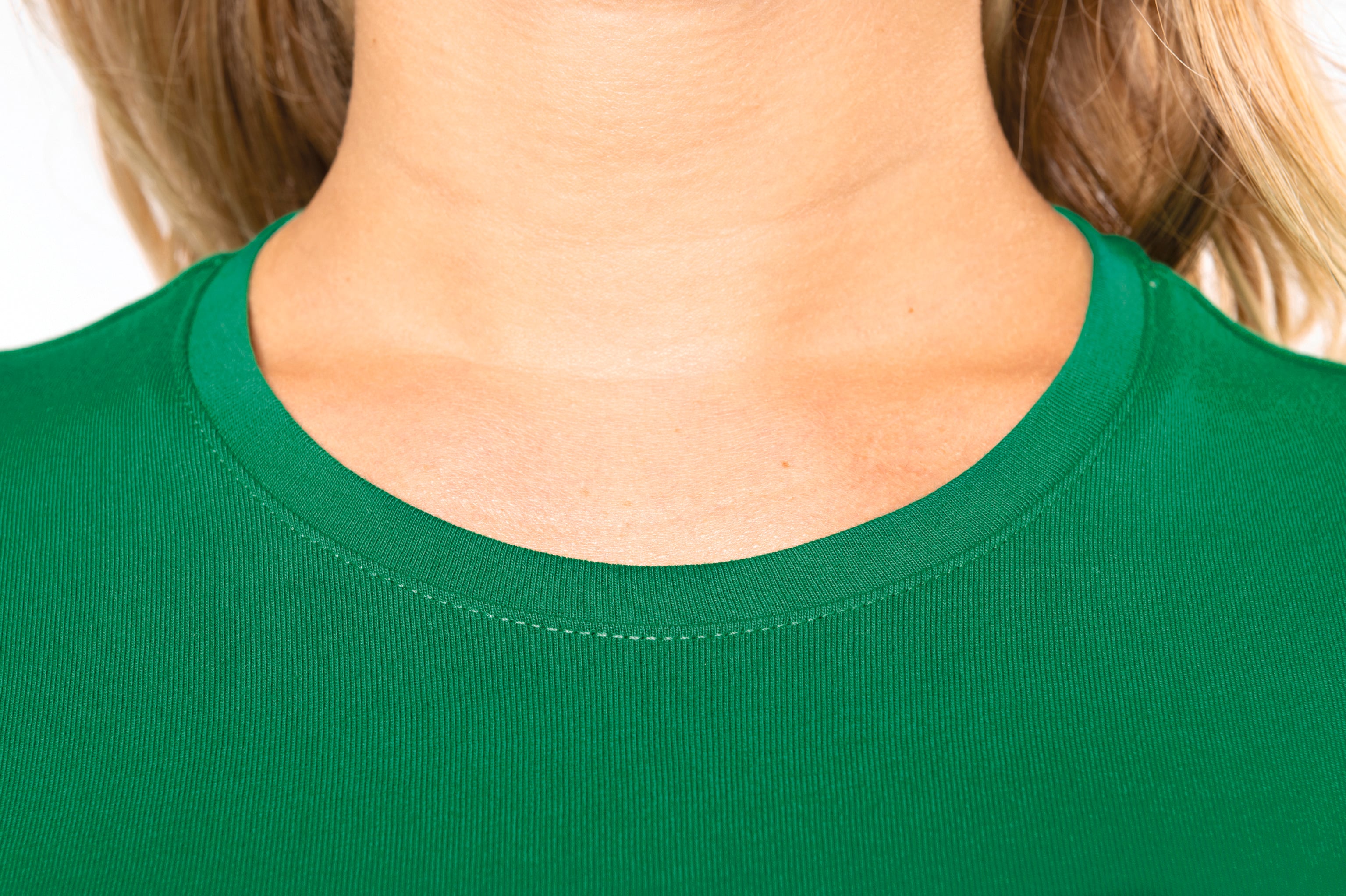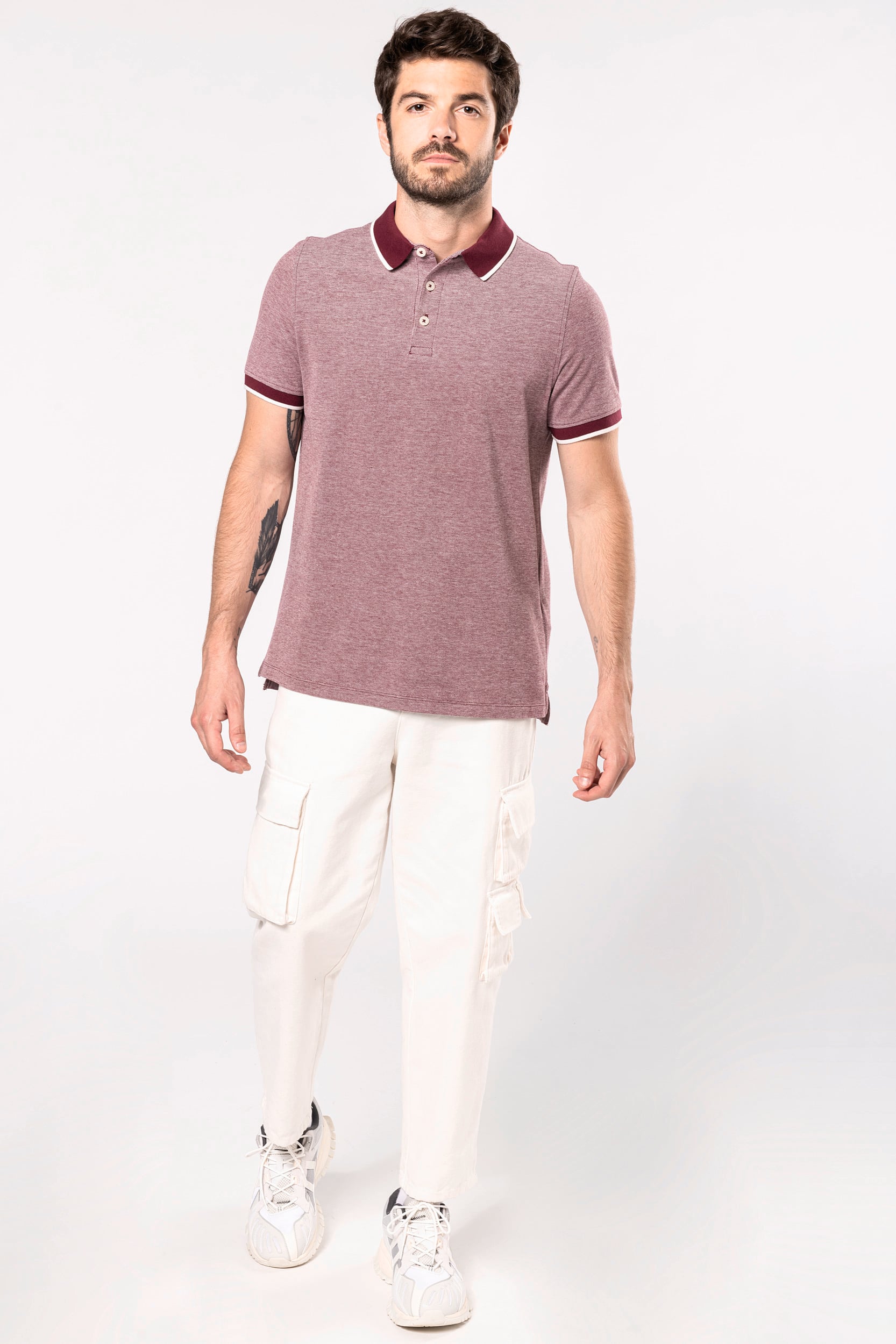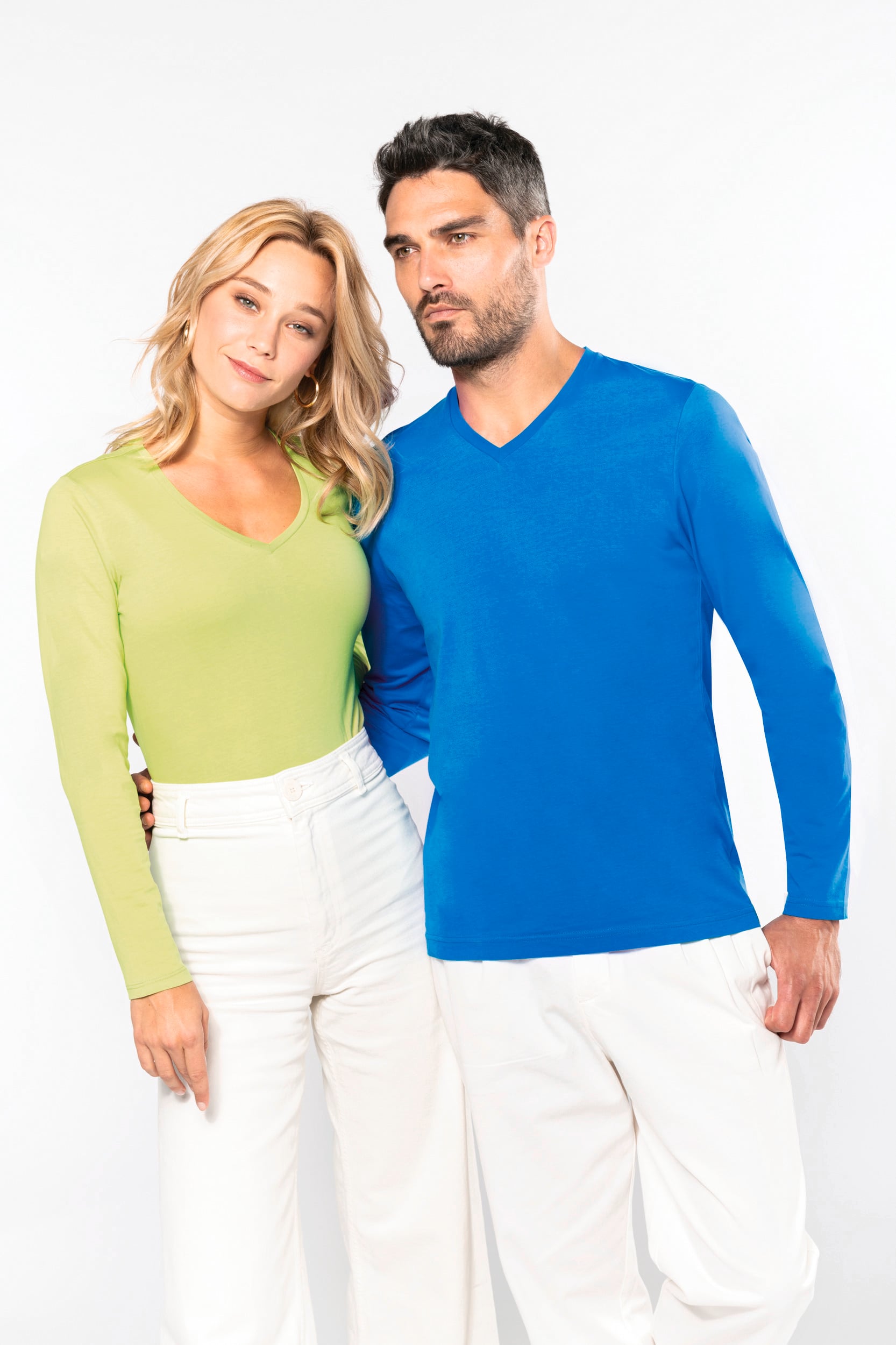 Camiseta de punto piqué con cuello de pico de mujer Manga corta