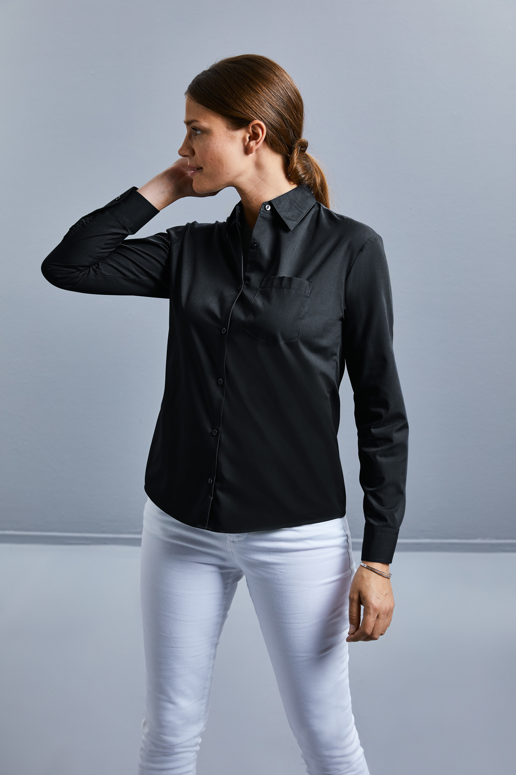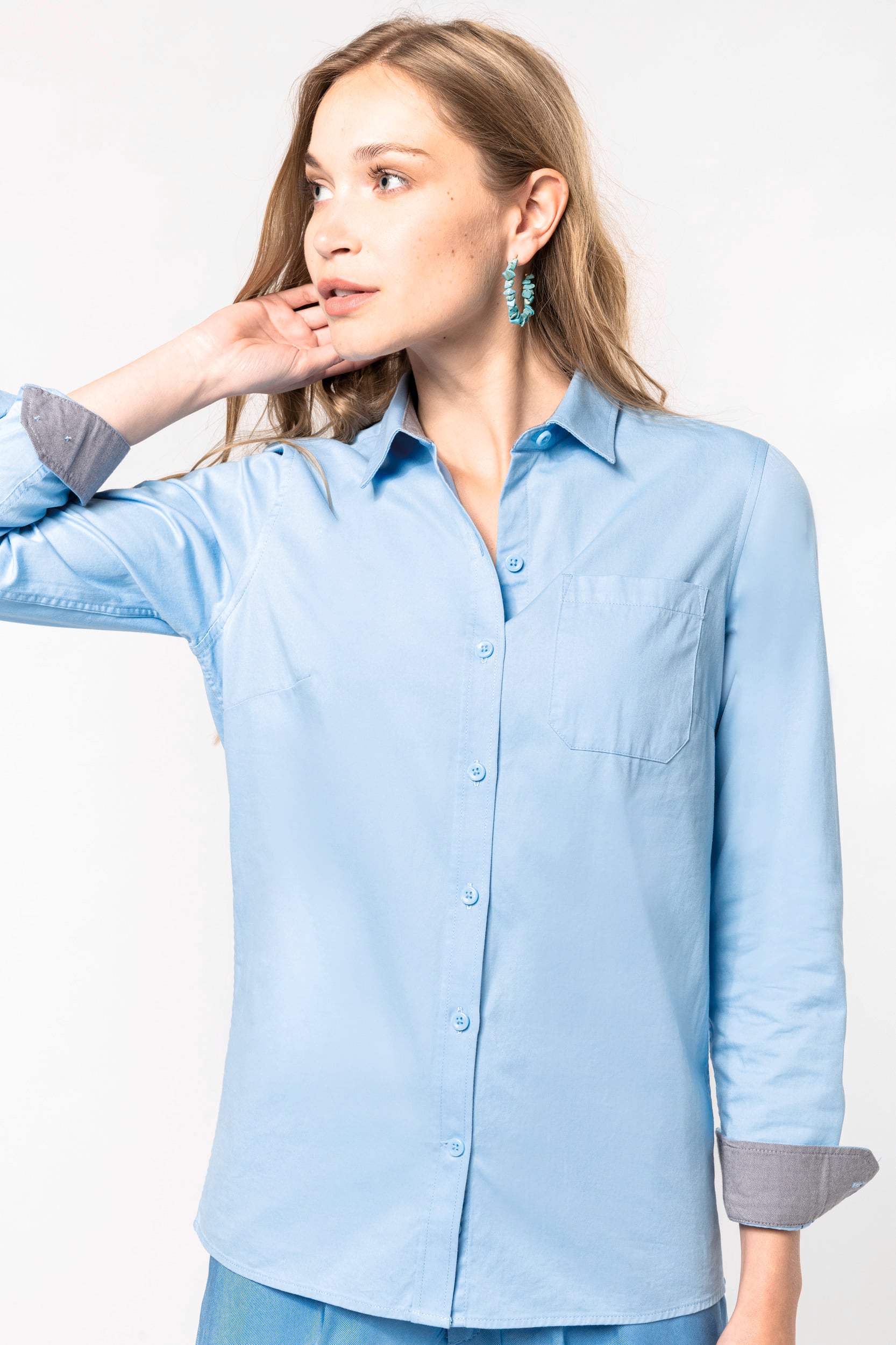CAMISA POPELINA LAVADA<br/>MANGA LARGA Manga larga