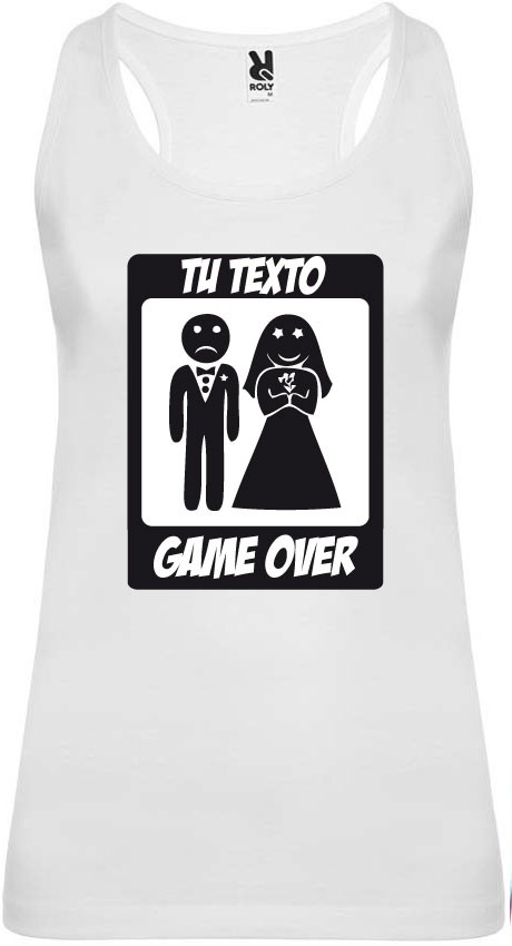 Camiseta blanca de tirantes para despedida de soltera con diseño Game Over