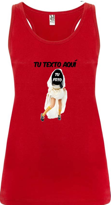 Camiseta de tirantes modelo Novia con Zapatillas, para mujer con texto personalizado y la foto de tu cara.