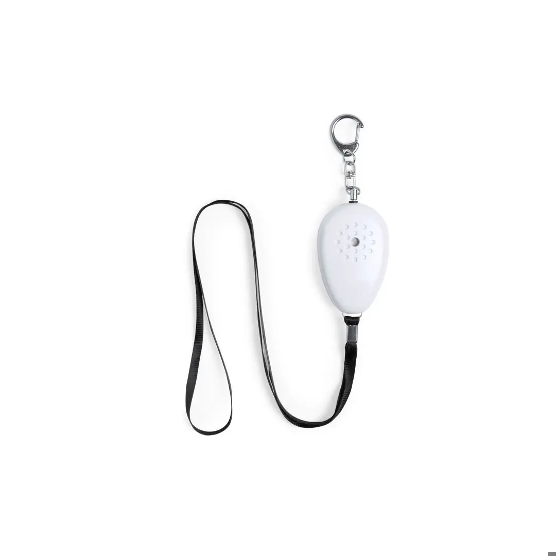 Alarma personal con potente timbre de volumen extra fuerte. El funcionamiento es sencillo, solamente hay que tirar de la cinta para que suene la alarma. Con mosquetón metálico de enganche y cinta resistente de 36 cm de largo. Alimentación a pilas (de botón incluidas) y presentado en atractiva bolsa de diseño.