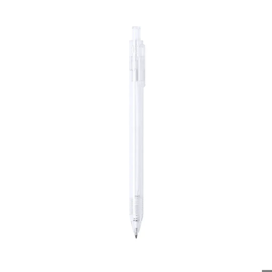 Bolígrafo de línea nature en material RPET, elaborado a partir de plástico reciclado para así fomentar la reutilización de residuos plásticos y ayudar a la sostenibilidad del planeta. De acabado translúcido y con pulsador disponible en variada gama de colores, con distintivo RPET en el cuerpo del bolígrafo. Especialmente diseñado para marcaje en tampografía, de mecanismo pulsador y con tinta azul.