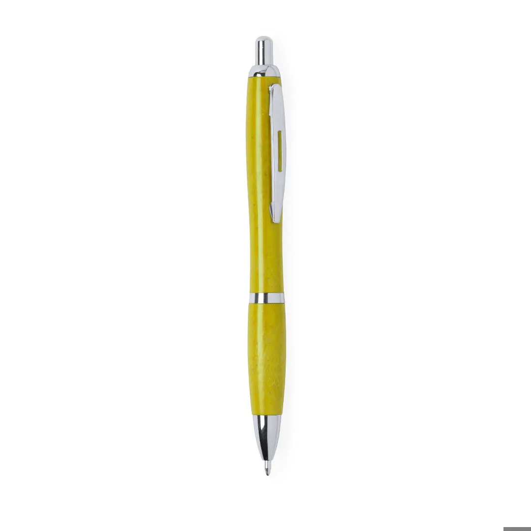 Bolígrafo de línea nature con cuerpo en caña de trigo, para así fomentar la utilización de materias primas naturales y reducir las emisiones contaminantes. De mecanismo pulsador, con detalles cromados y clip troquelado, cartucho jumbo y tinta azul. Disponible en variada gama de colores.
