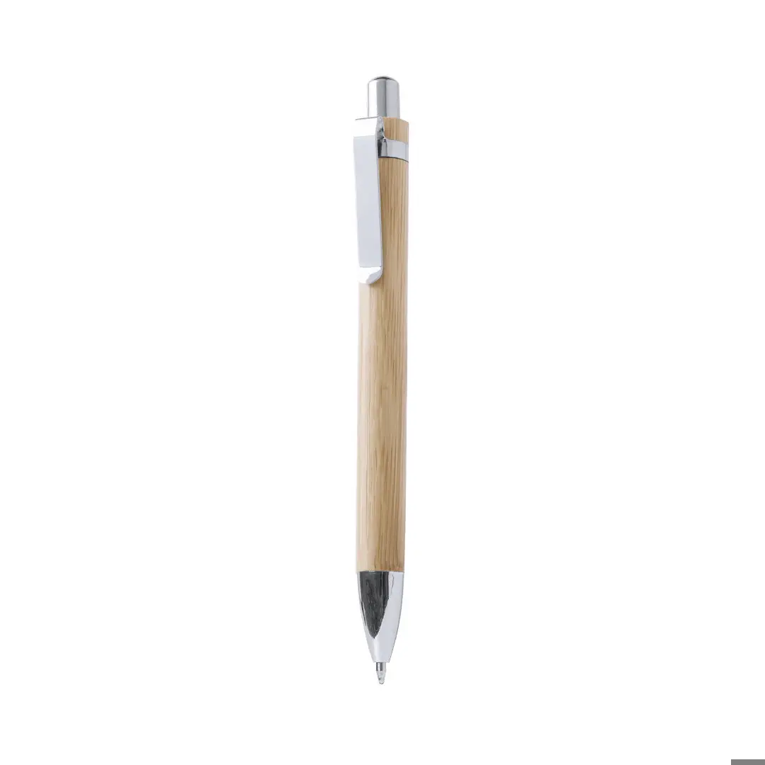 Elegante bolígrafo de mecanismo pulsador con cuerpo en madera de bambú natural y accesorios de acabado metálico en color plateado brillante. De cartucho jumbo y tinta azul. Bolígrafo Yiagan. Producto realizado en Bambú. (Carga Jumbo) Elegante bolígrafo de mecanismo pulsador con cuerpo en madera de bambú natural y accesorios de acabado metálico en color plateado brillante. De cartucho jumbo y tinta azul. Confía en Garrampa, líder en Bolígrafos publicitarios desde hace 15 años y sorprende a tus clientes y empleados con cualquier regalo promocional incluido en nuestra amplia gama de productos.