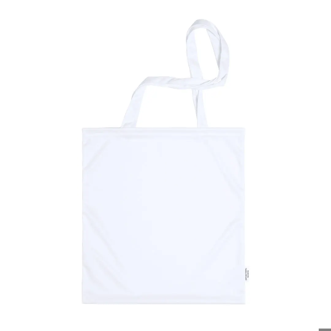 Bolsa antibacteriana de alta calidad en suave poliéster elástico con propiedades hidrófugas, fácil de imprimir. Con etiqueta distintiva antibacteriana. Tamaño 37x41 cm, de acabado cosido y con asas largas. Resistencia de hasta 7kg de peso. Los productos con tratamientos antibacterianos son capaces de reducir drásticamente las cargas bacterianas presentes en las superficies de los materiales, gracias a la incorporación de agentes microbianos permanentes estáticos, con alta efectividad para inhibir y prevenir la contaminación bacteriana. Artículo de acuerdo al estándar ISO 20743, que determina la actividad antibacteriana en productos textiles, lo que permite conocer la efectividad de inhibición microbiana que tienen los aditivos sobre los objetos tratados mediante una evaluación cuantitativa.