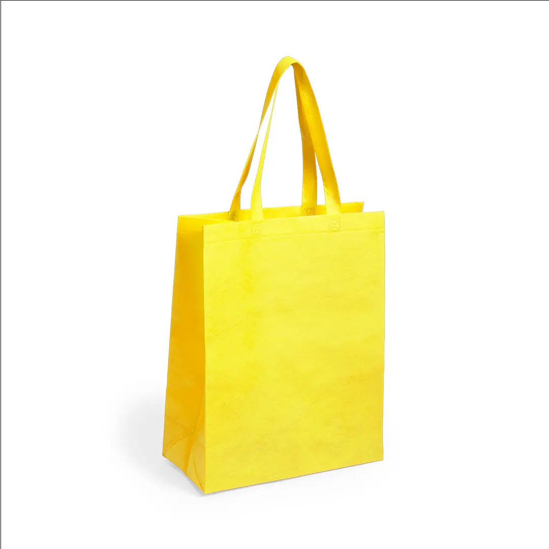 Bolsa en non-woven de 80g/m2, en variada gama de vivos colores. Con asas medianas de 50cm reforzadas, fuelle y acabado termosellado. Resistencia hasta 9kg de peso.