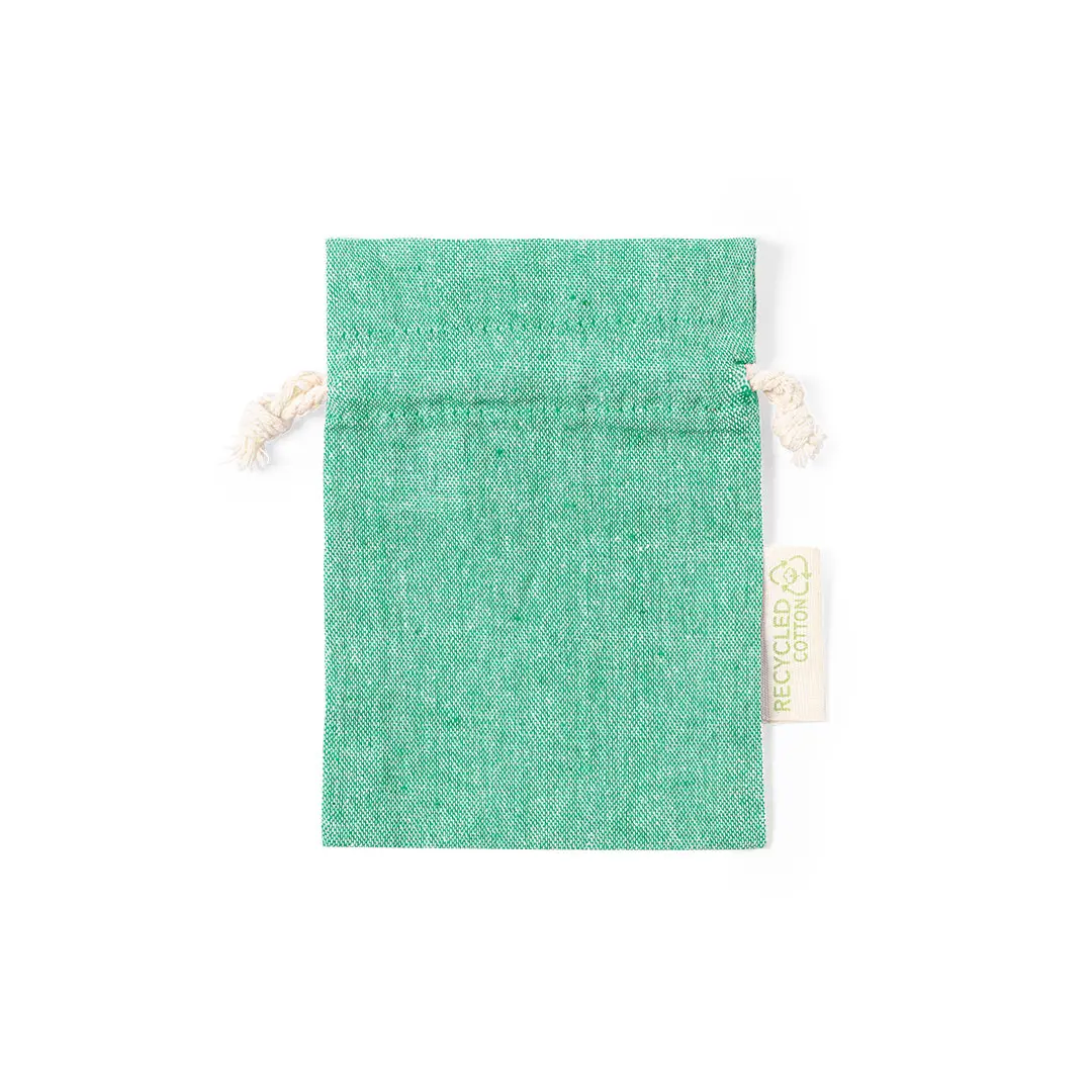 Bolsita de línea nature y tamaño 10x14 cm. Con cierre de cordón y fabricada en 100% algodón reciclado GRS de 120g/m2. Fácil marcaje y especialmente diseñada para pequeños objetos, con distintivo algodón reciclado en etiqueta exterior. Disponible certificación GRS (Global Recycled Standard / Estándar de Reciclaje Global), que garantiza el origen reciclado del material usado para fabricar el producto. Disponible en variada gama de colores.