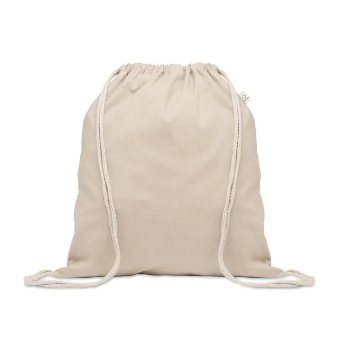 Bolsa de cuerdas de algodón reciclado pre consumo (70%) y RPET (30%). 140 gr/m².