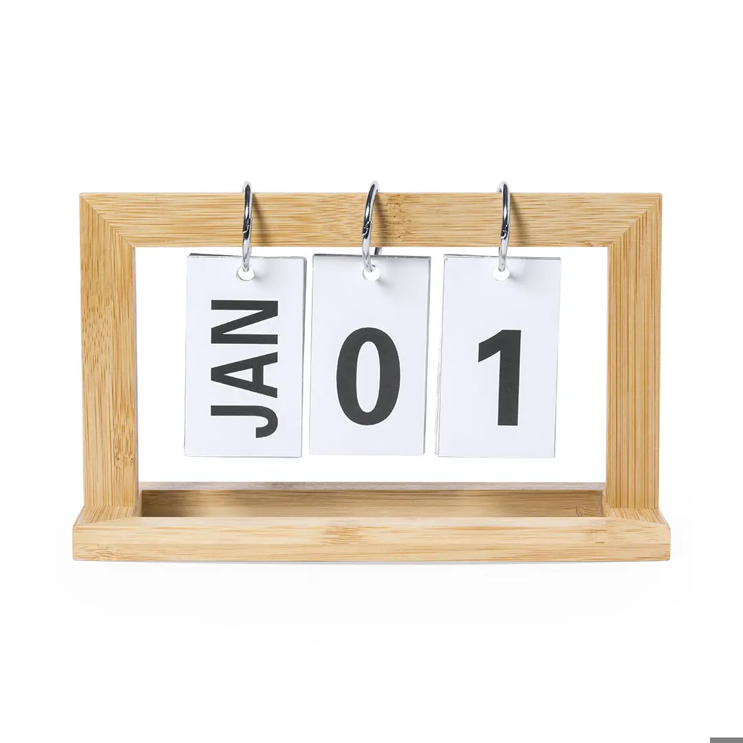 Calendario perpetuo de línea nature: ya no es necesario cambiar de calendario cada año, con el beneficio al medio ambiente que esto supone. Fabricado en bambú, con anillas metálicas cromadas. Tipografía de fácil lectura y especialmente diseñado para marcaje en láser.