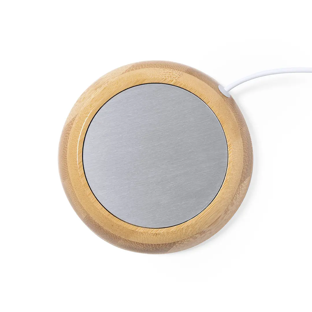 Calentador de tazas de línea nature, fabricado en bambú. Conexión USB y superficie metálica especialmente diseñada para mantener el calor, con base antideslizante en antelina. Presentado en caja individual de diseño eco. Disponible manual de instrucciones en español e inglés.
