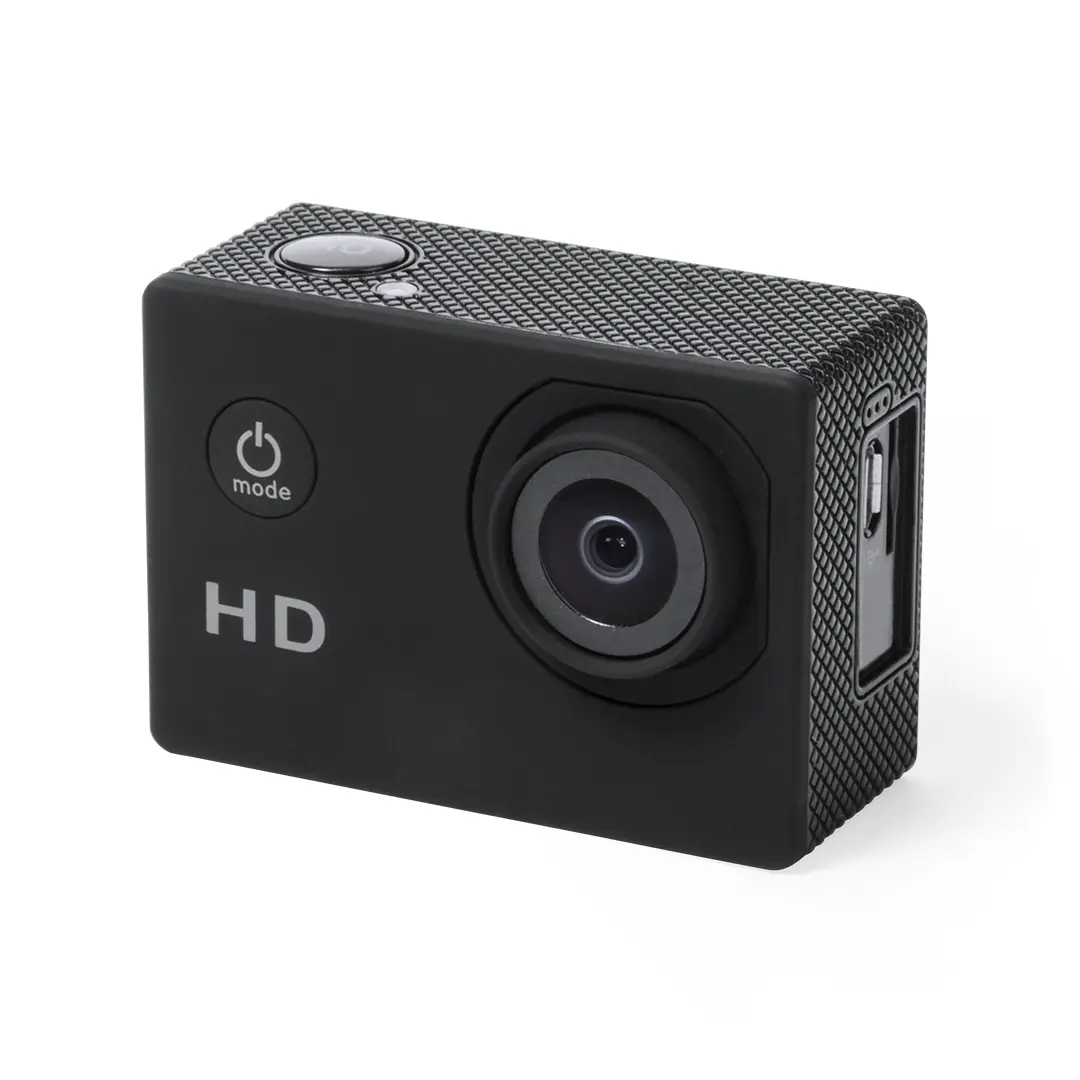 Cámara deportiva de alta calidad de captura de vídeo HD 720p, de diseño compacto y resistente, especialmente diseñada para uso intensivo. Incluye carcasa sumergible hasta 30m de profundidad y multitud de accesorios para ajuste en casco, manillar o cinturón, así como correas ajustables para cabeza y torso o un adaptador giratorio de 360º. La versatilidad y resistencia de esta cámara deportiva la convierten en el gadget perfecto para capturar, con una calidad excepcional, cualquier actividad deportiva. Con función cámara de fotos Full HD 1080p, ranura para tarjetas micro SD de hasta 32 GB de capacidad, sistema multilenguaje, y recargable mediante cable microUSB -incluido-. Presentada en atractiva caja de diseño.