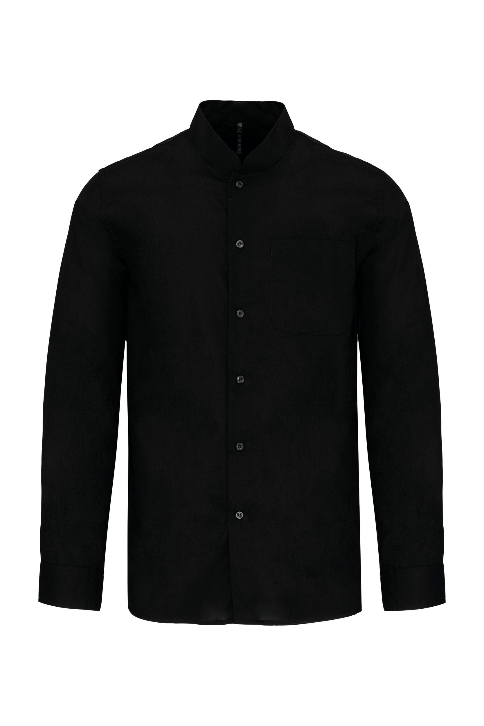 65% poliéster / 35% popelina de algodón. Tejido de cuidado-fácil (Easy-care). Cuello Mao. Botones a tono. Bolsillo redondeado en pecho izquierdo. Puños ajustables con tapeta de botones. 2 botones adicionales. Certificado STANDARD 100 by OEKO-TEX®N° CQ1007/8, IFTH.
