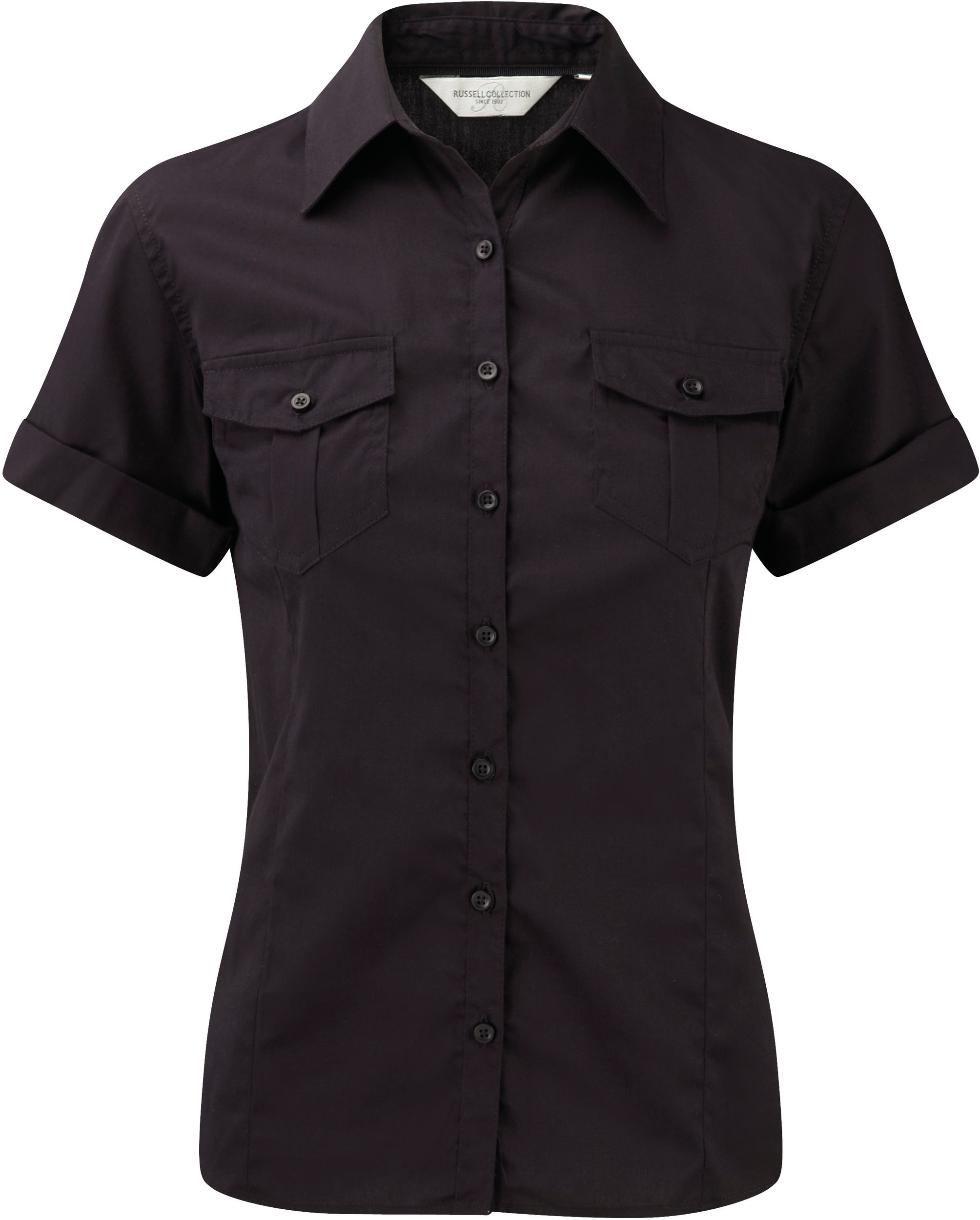 Camisa de Sarga roll-up manga corta mujer Manga corta