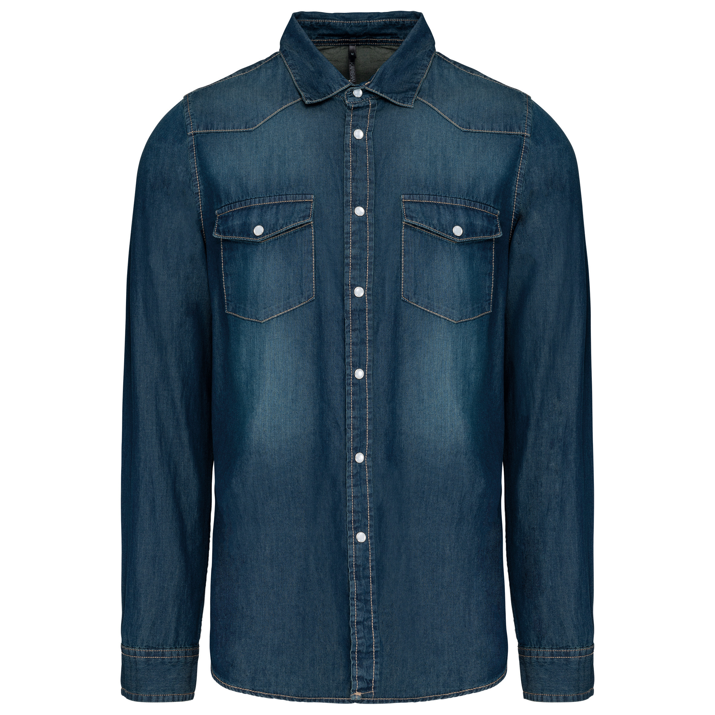 100% algodón. Camisa lavada con enzimas. Corte entallado. Botones de presión decorados. 2 bolsillos en pecho con solapa y botones de presión. Canesú delante y detrás. Puños con botones de presión. El producto lleva un tratamiento especial que refleja un aspecto envejecido intencional en la prenda. El proceso efectuado da como resultado una variación de color ente los productos convirtiendo cada pieza en única.