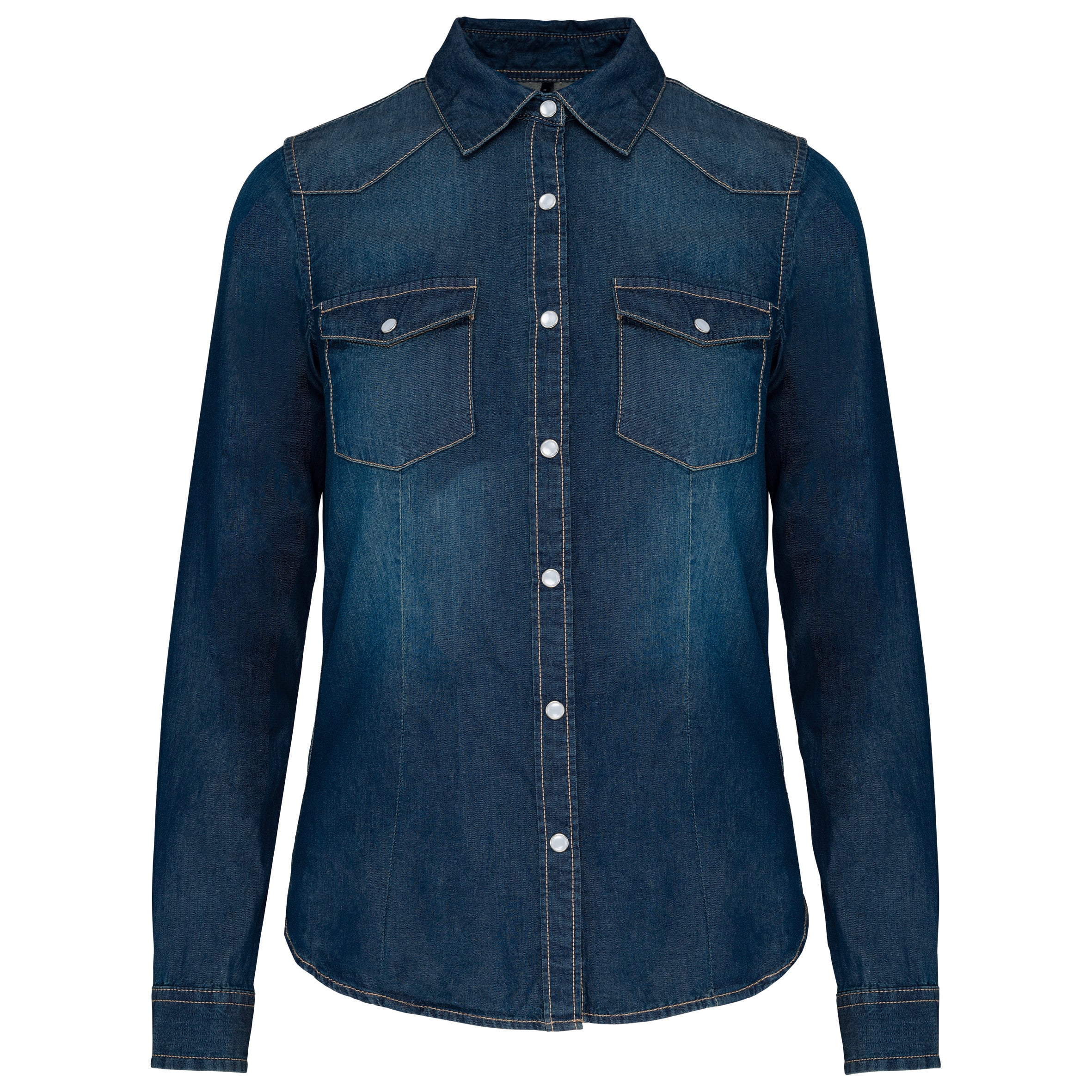 100% algodón. Camisa lavada con enzimas. Corte entallado. Botones de presión decorados. 2 bolsillos en pecho con solapa y botones de presión. Canesú delante y detrás. Puños con botones de presión. Dobladillo con forma redonda. El producto lleva un tratamiento especial que refleja un aspecto envejecido intencional en la prenda. El proceso efectuado da como resultado una variación de color ente los productos convirtiendo cada pieza en única.