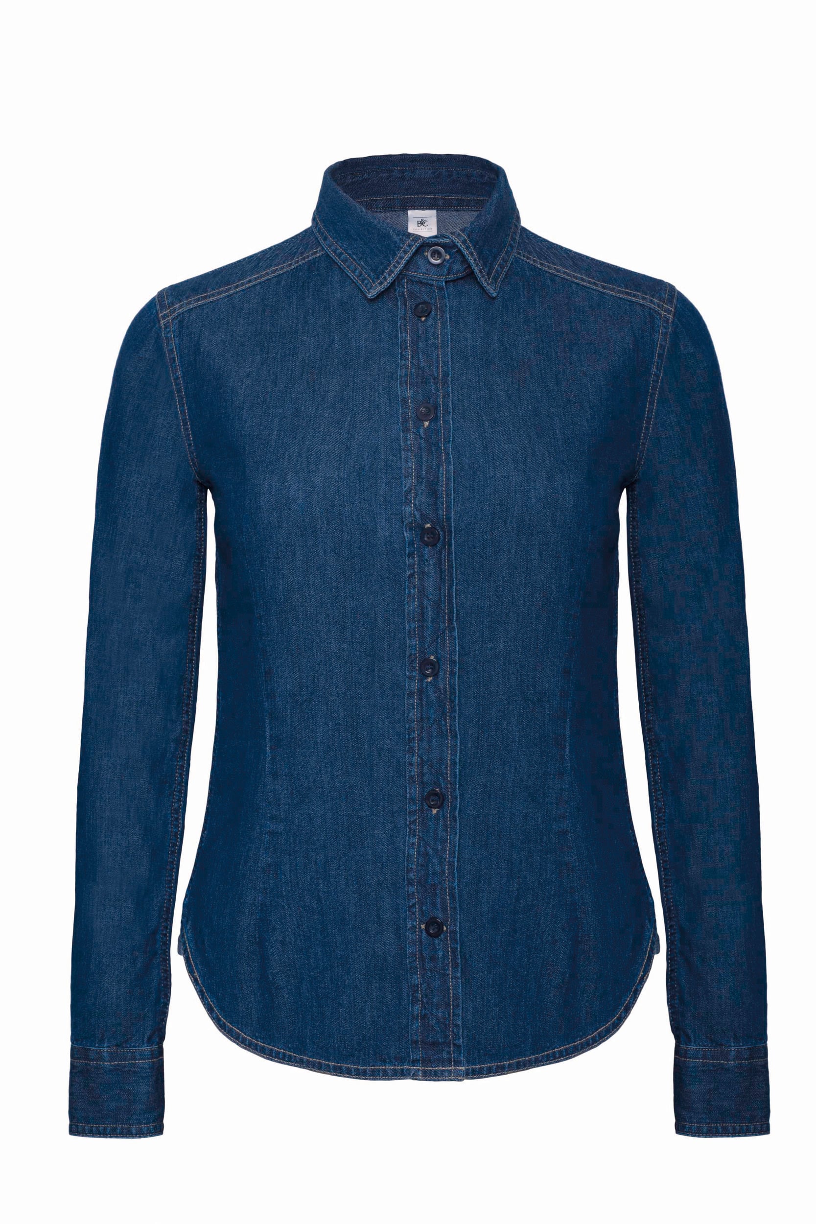 100% algodón denim, acabado lavado. Camisa de manga larga. Corte entallado. Manga larga y puños con dos botones. Pinza en el pecho y en la espalda para una silueta femenina. Cuello femenino con solapa adicional en el primer botón y una tira fina en denim invertido. Parte trasera del cuello en 2 partes para un look vintage. Botones a tono. Plaqueta de botones a tono en costura individual zigzag. Botón decorativo de latón envejecido en tira de la manga izquierda. Canesú decorativo con pespuntes dobles en la parte delantera del hombro. Denim invertido en el borde inferior. Borde inferior redondeado. Certificado STANDARD 100 by OEKO-TEX®N° 1501003X, Centexbel.