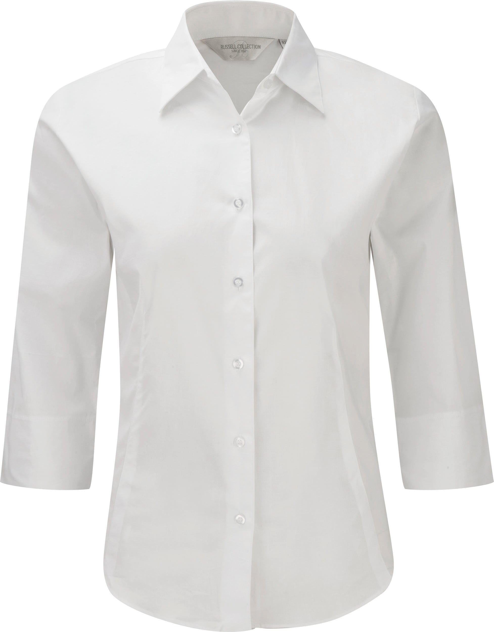 97% popelina de algodón / 3% elastán. Tejido stretch para una mayor comodidad y un ajuste perfecto, mínimos cuidados necesarios. Tapeta con 7 botones de color a tono. Pinzas en la espalda y en la parte delantera (del dobladillo inferior hasta el pecho) para un corte adaptado a la silueta femenina. Cuello clásico de botón único. Mangas hasta los codos con puños abiertos. Certificado STANDARD 100 by OEKO-TEX®N° 08-5941, Shirley.