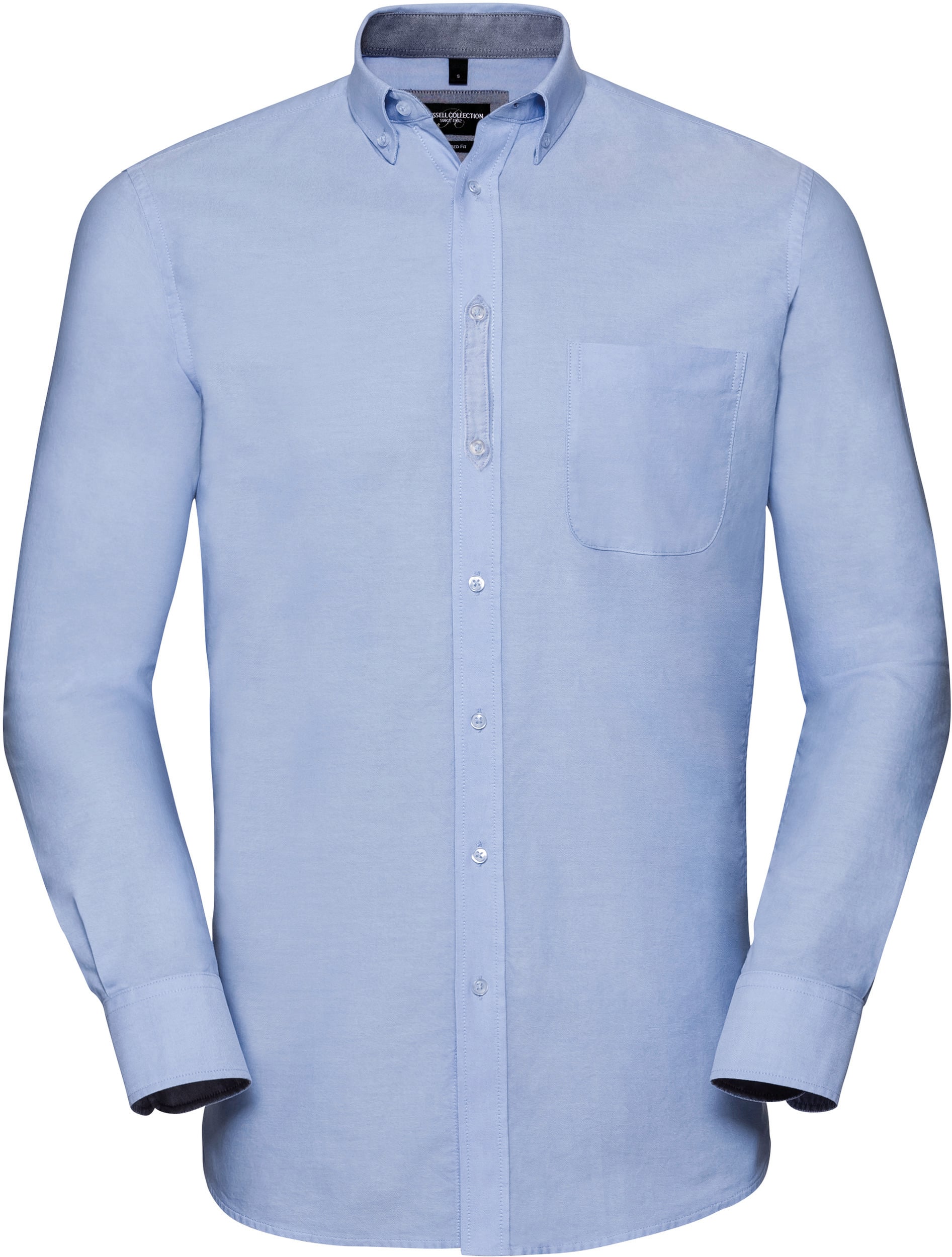 100 % algodón. Corte entallado. Cuello con botones. Interior del pie de cuello y puños contrastados. Botones contrastados. Hebilla extraíble para fijación opcional de corbata o gafas. Bolsillo en el pecho izquierdo. Puños ajustables redondeados con dos botones. Dobladillo redondeado. Certificado STANDARD 100 by OEKO-TEX®N° 08-5941, Shirley.