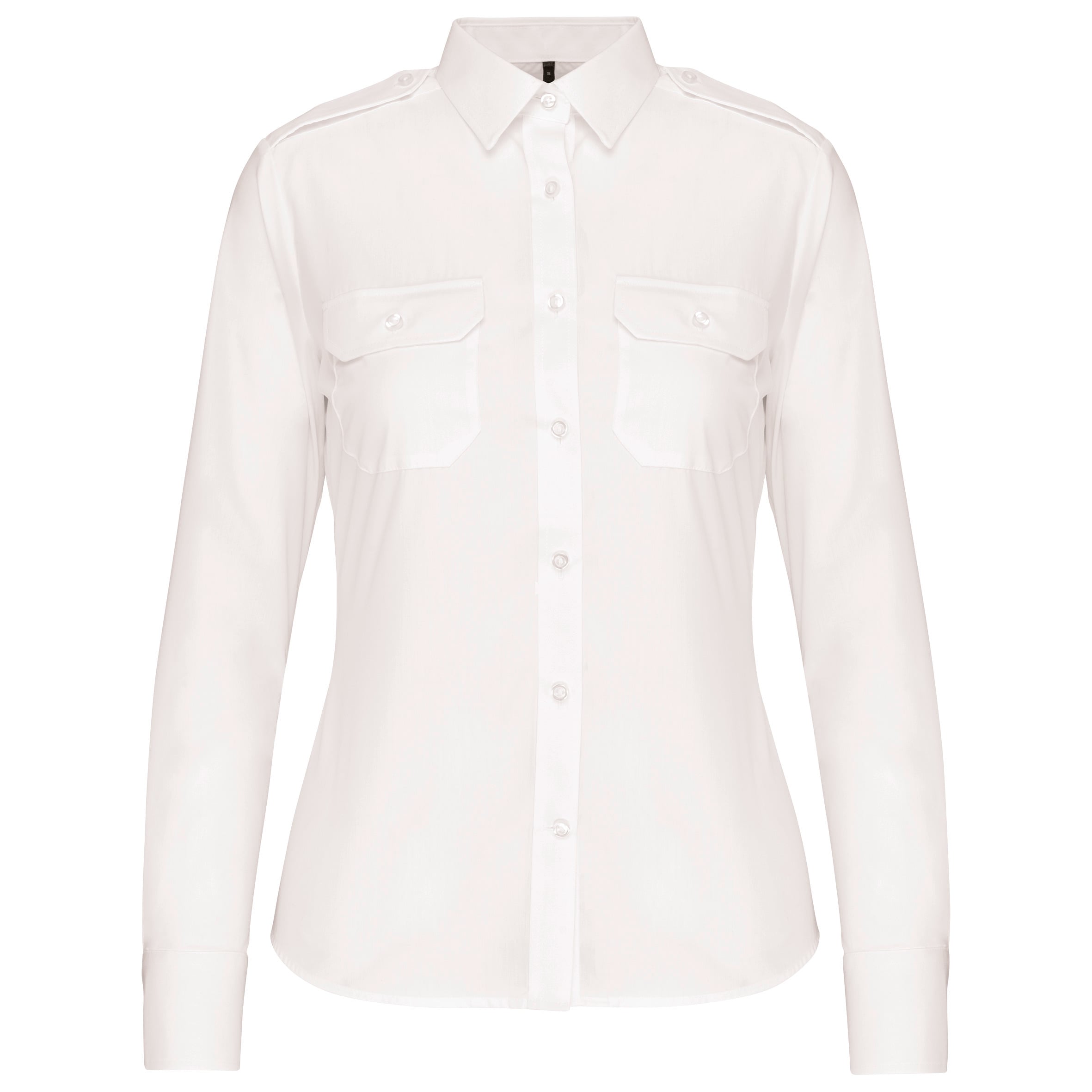 65 % poliéster / 35 % popelina de algodón. Fácil cuidado (tratamiento Easy care). Botones a tono. Dos bolsillos en el pecho con solapa. Bolsillo izquierdo con espacio para bolígrafo. Plaqueta con botones en los hombros para colocar los galones (los galones no están incluidos). Puños ajustables con botones. Certificado STANDARD 100 by OEKO-TEX® N° CQ 1007/7, IFTH.