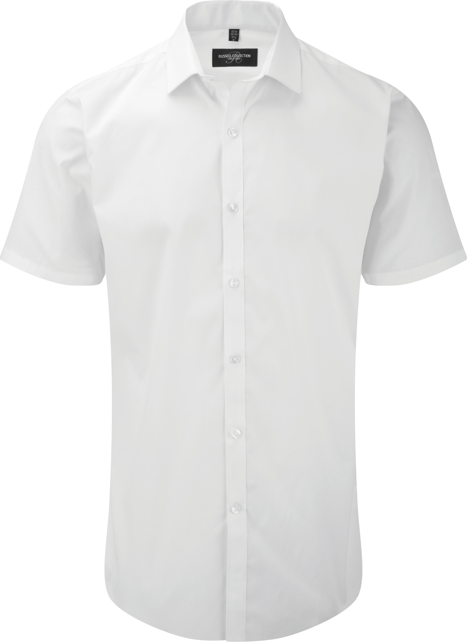 75% algodón / 25% elastomultiester (fibra Lycra® T400). Esta nueva fibra aporta comodidad, elasticidad, resistencia y gestión de la humedad. Cuello corto y semi-cutaway. Tapeta estrecha. Pinza en la espalda. Corte entallado. Certificado STANDARD 100 by OEKO-TEX®N° 08-5941, Shirley.