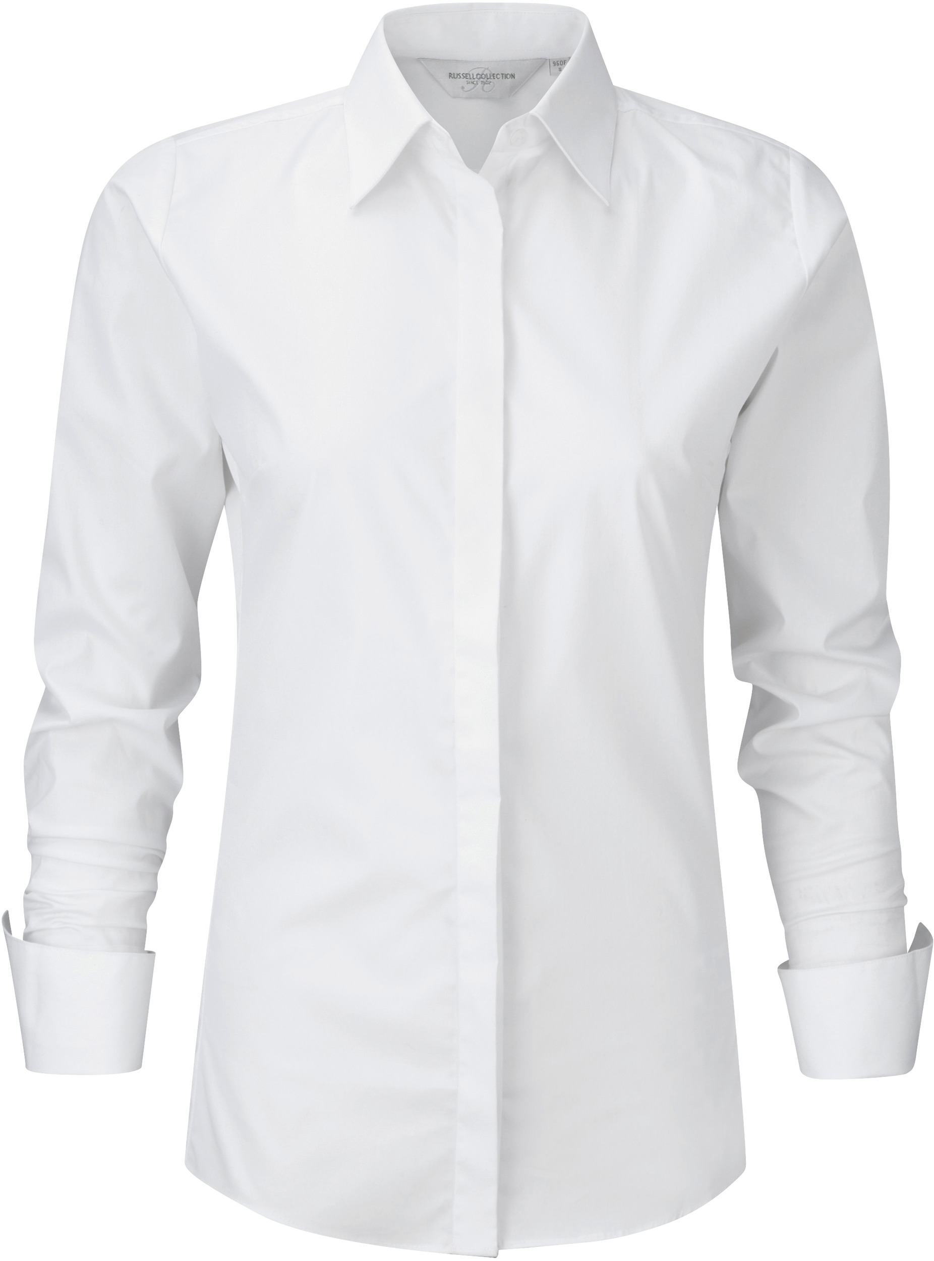 75% algodón / 25% elastomultiester (fibra Lycra® T400). Esta nueva fibra aporta comodidad, elasticidad, resistencia y gestión de la humedad. Cuello moderno. Tapeta con botones ocultos. Paneles princesa sin costuras laterales. Pinza en la espalda. Puños napolitanos. Corte entallado. Certificado STANDARD 100 by OEKO-TEX®N° 08-5941, Shirley.