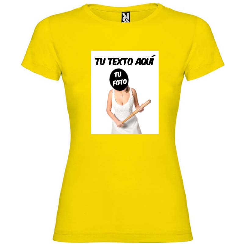 Camiseta ajustada con diseño de novia con bate para poner tu foto