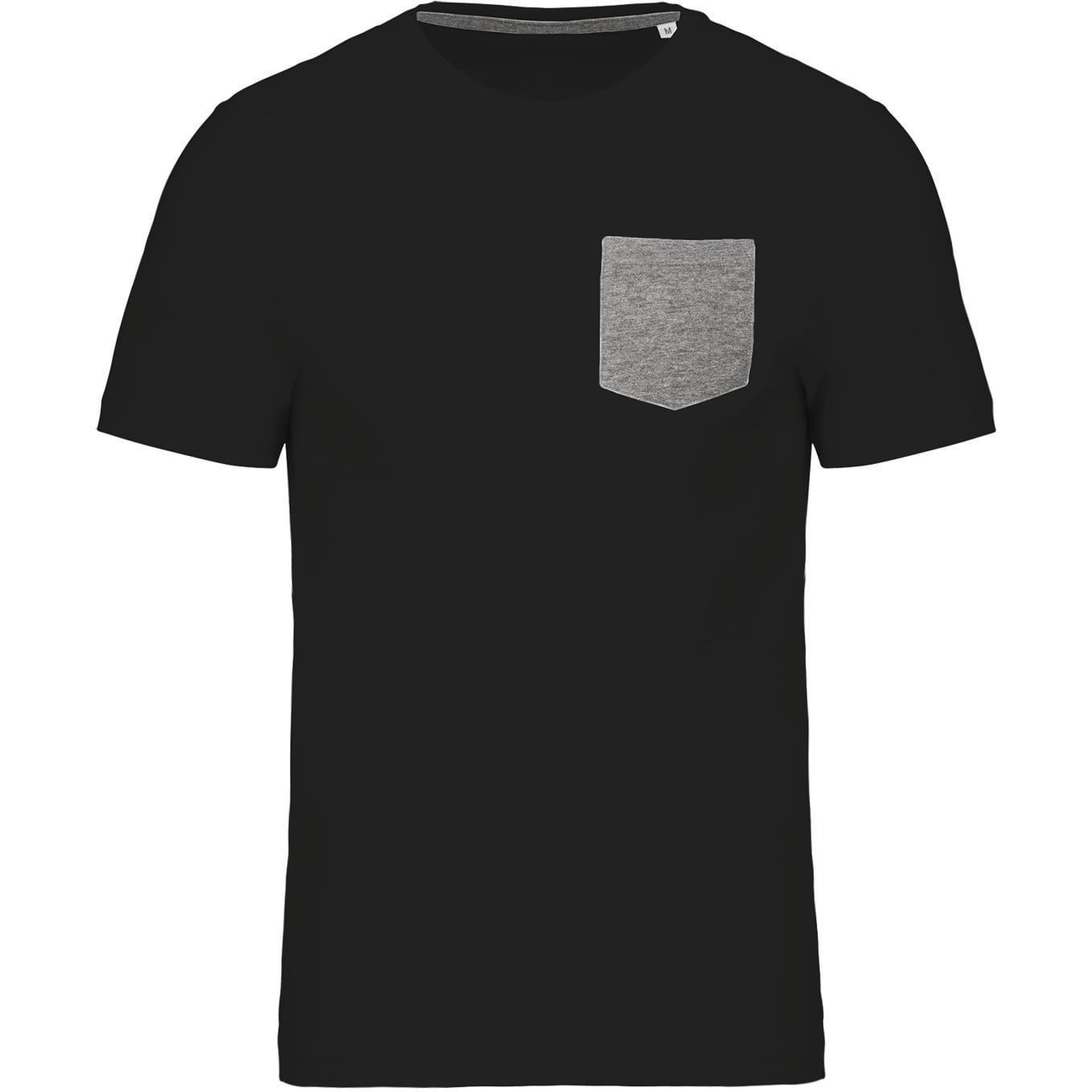 Colores lisos: 100% algodón orgánico. Color Grey Heather : 70 % algodón orgánico / 30 % viscosa . Cuello redondo de canalé. Bolsillo contrastado en el pecho lado izquierdo. Tira tapacosturas en cuello y aberturas laterales contrastadas. Acabado con doble pespunte en el bajo de mangas y de la prenda. Sin etiqueta de marca en el cuello para facilitar la personalización. Únicamente una etiqueta con la talla. Certificado STANDARD 100 by OEKO-TEX®N° CQ1007/7, IFTH.
