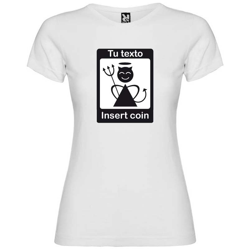 Diseño Insert Coin para camiseta de despedida blanca de mujer