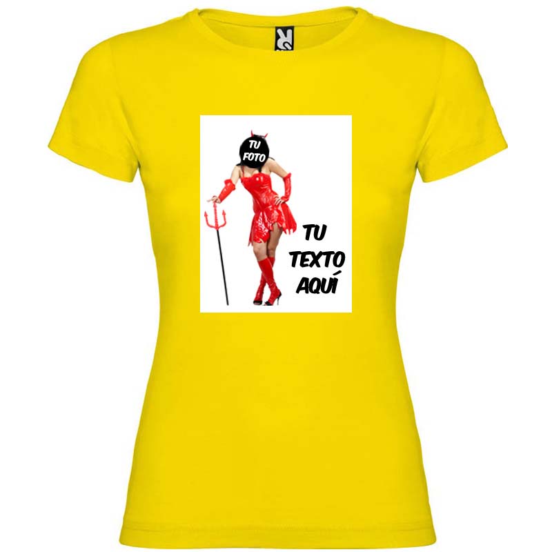 Esta camiseta para despedida puede personalizarse con la ayuda de tu foto sobre la cara de esta diablesa, además de incluir la frase o texto que necesites para la ocasión
