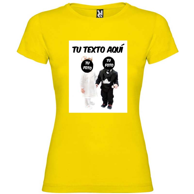 Esta camiseta para despedidas lleva incluido el diseño de Novios Bebés sobre el cual podrá incluir su foto y su texto