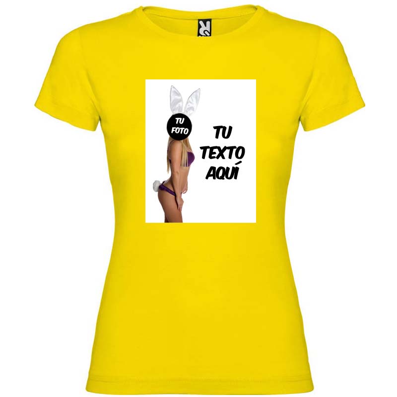 Camiseta en color para despedidas con diseño de conejita en la que podrás poner tu foto y frase