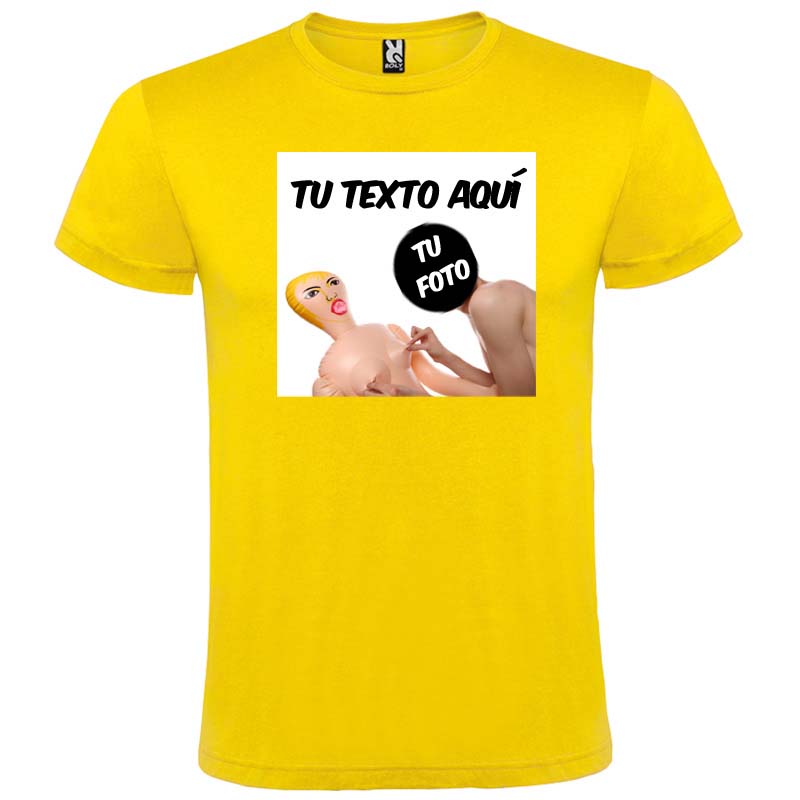 Para los más divertidos tenemos este modelo de camiseta para fiestas y despedidas de soltero, con un diseño en el que aparece una muñeca hinchable y en el cual podrá colocar la fotografía de la persona que quiera. En este caso, recomendamos que incluya la foto del novio o novia, y un texto dedicado a su despedida de soltero. La composición de esta camiseta es del 100% algodón con punto liso, que permite que quede una estampación mucho más homogénea. Este modelo de camiseta para despedida se estampa mediante transfer, especial para este tipo de prendas que van a utilizarse en ocasiones puntuales. Su tejido tubular permite que la puedan utilizar de forma unisex.
