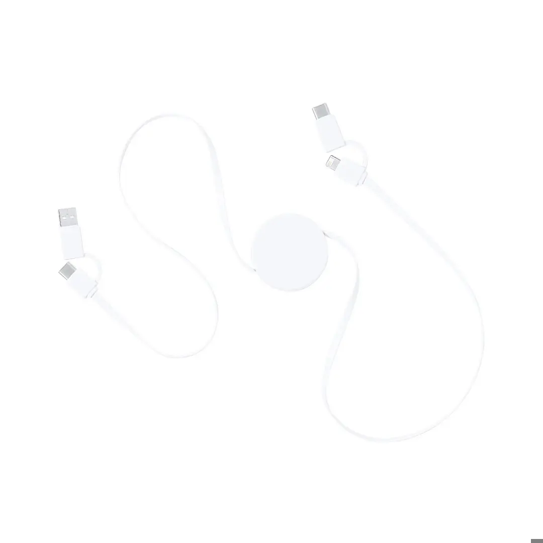 Cargador extensible de diseño ultra compacto. Conexiones Tipo C (entrada y salida), y dual Micro USB/Lightning. Función cargador y transferencia de datos. Amplia superficie de marcaje y presentado en bolsa individual.