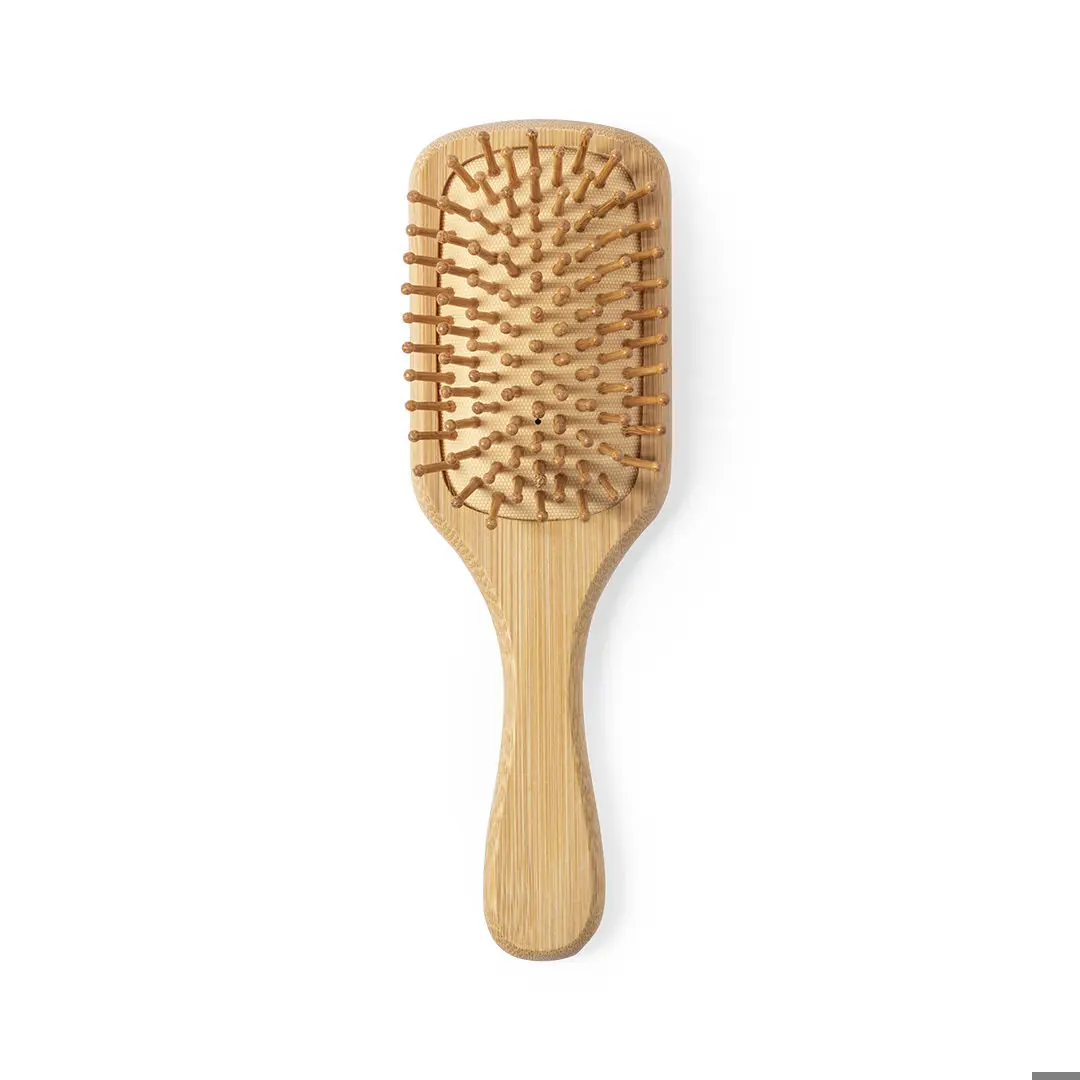 Cepillo de línea nature en bambú pulido, para así fomentar la utilización de materias primas naturales y reducir las emisiones contaminantes. Con amplia superficie de marcaje en mango y presentado en atractiva caja de diseño eco.