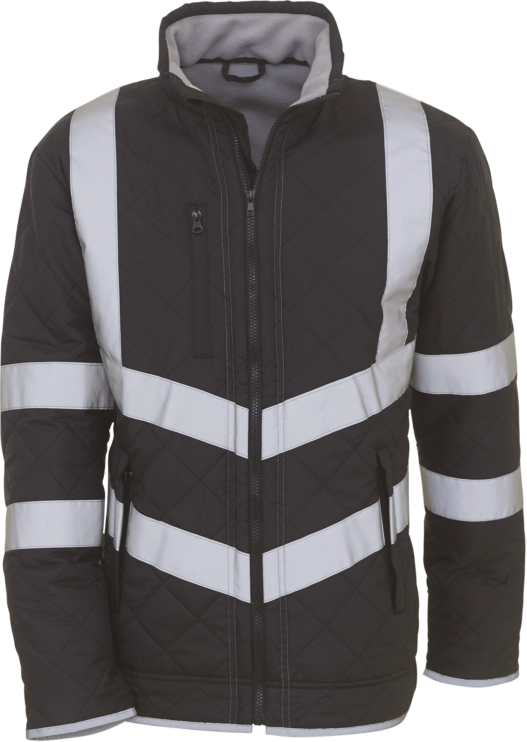 100% poliéster exterior hidrófugo con forro polar y acolchado 100% poliéster. Dos tiras reflectantes (5cm de ancho) en forma de V en el cuerpo y en los brazos para una mejor visibilidad. Cuello alto con protector de mentón integrado. Bolsillo en el pecho con cremallera. 2 bolsillos laterales con cremallera para abrigar las manos. 1 bolsillo parche en el forro fijo de polar. Ribetes reflectantes en el bajo de las mangas y de la prenda. Cremallera para la personalización invisible en el bajo de la prenda (lado interior). Cumple con la norma EN ISO 20471:2013 de categoría 3 (solo los colores Hi-Vis Yellow y Hi-Vis Orange) y con la norma sobre «Prendas de Alta Visibilidad» de las vías férreas UK GO/RT 3279 emitida 8:2013 (solo Hi-Vis Orange).