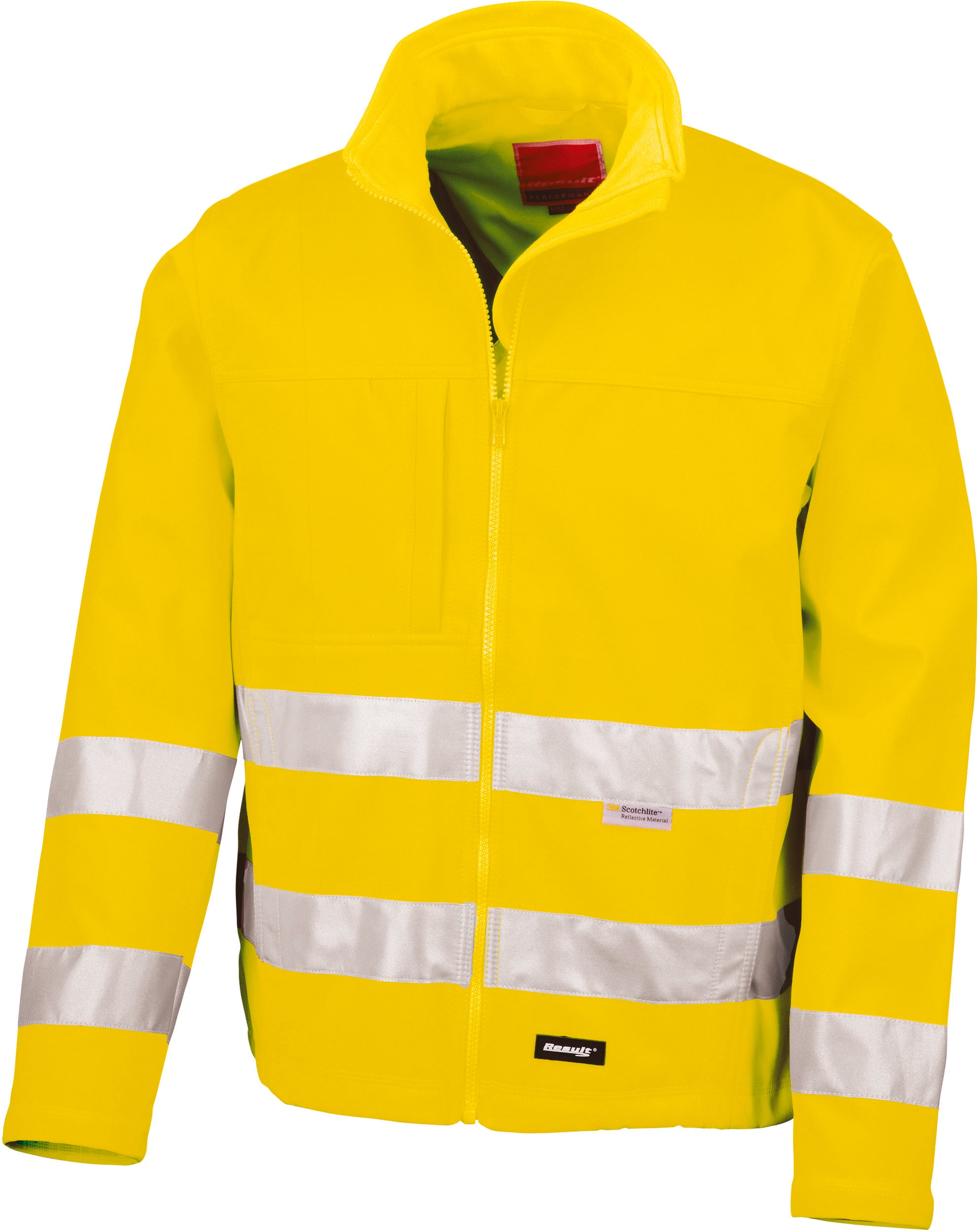 Tejido laminado de 3 capas. Capa exterior: 93% poliéster /7% elastán. Capa intermedia: membrana impermeable 5000 mm y transpirable 3000 gr/m2/24 de poliuretano termoplástico. Capa interior: microfibra polar para una mejor capacidad térmica. Forro parte superior de la espalda 100% tafetán de poliéster. Dos bolsillos laterales con cremallera. 1 bolsillo con cremallera en el pecho. 2 grandes bolsillos interiores y 1 bolsillo interior para el móvil. Espalda más larga. Solapa antitempestad interior. Bandas de seguridad de 50 mm cosidas integrando los materiales reflectantes scotchlite de 3M.
