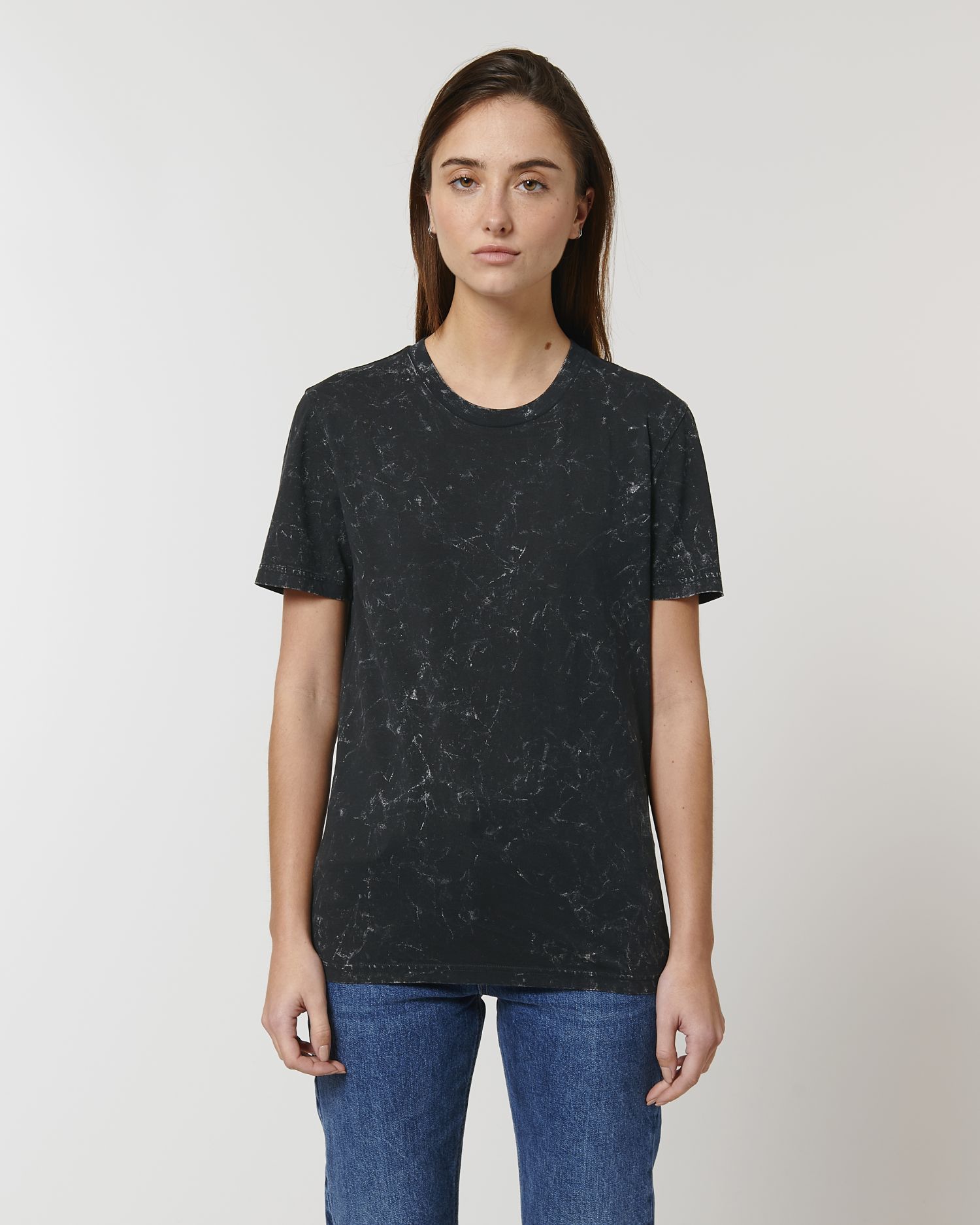 Camiseta unisex con salpicaduras. Corte normal, Cuello redondo, Short Sleeve, Punto de jersey sencillo.