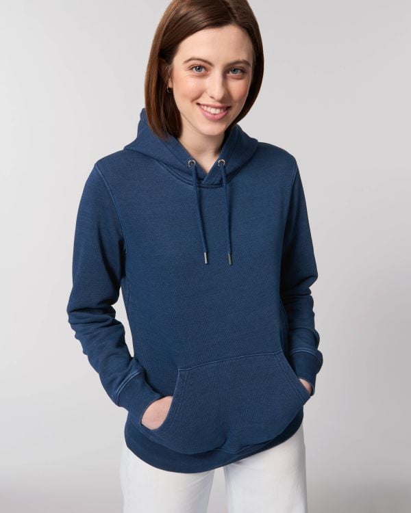 La sudadera denim con capucha unisex . Corte normal, Cuello redondo con capucha, Long Sleeve, Felpa no perchada.