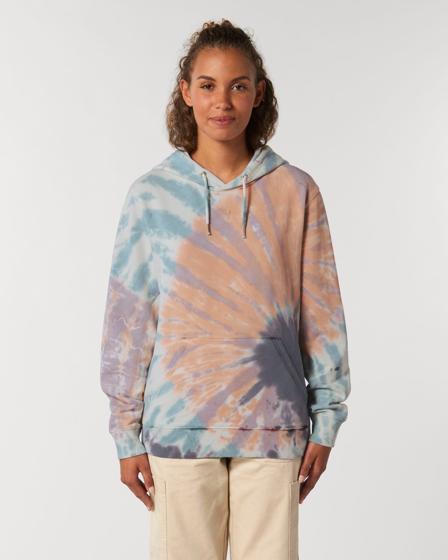 La sudadera unisex con capucha y estampado tie dye. Corte normal, Cuello redondo con capucha, Long Sleeve, Felpa no perchada.