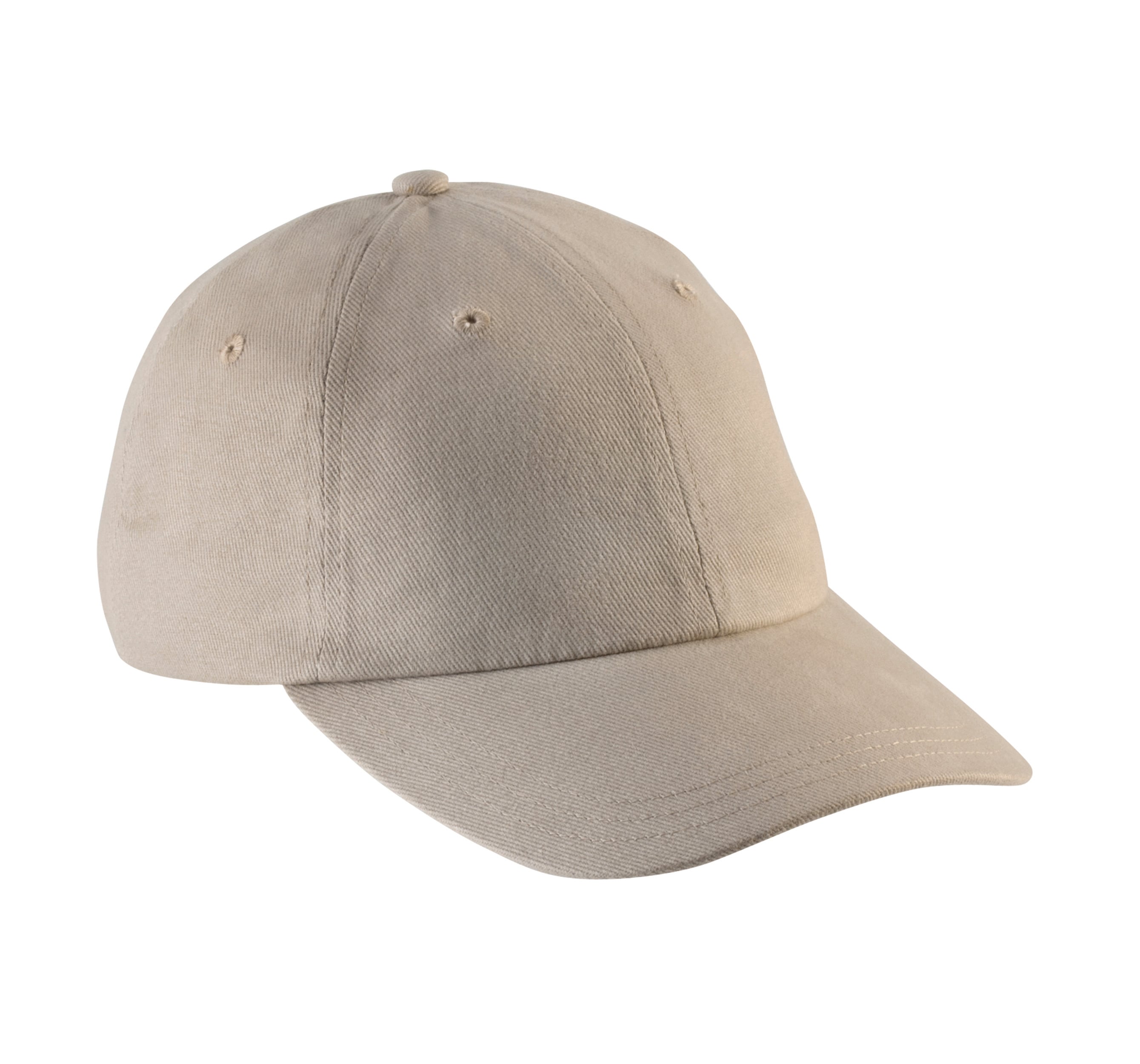 100% algodón denso peinado. Seis paneles. Visera de perfil bajo. Cierre trasero con hebilla metálica. Certificado STANDARD 100 by OEKO-TEX® N° CQ 1007/8, IFTH.