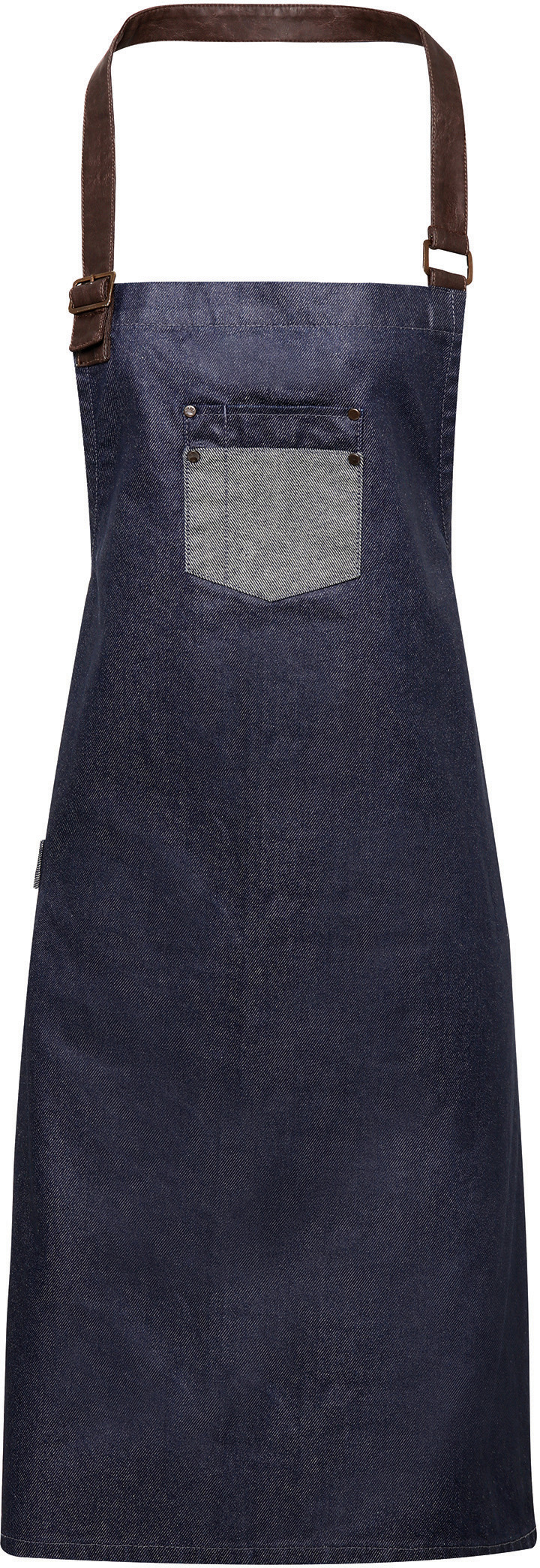 100% algodón denim con un acabado acrílico «efecto engrasado» de larga duración. Efecto denim tintado debido al contraste de hilos teñidos. Delantal con peto de estilo vintage con canesús contrastados y detalles de cuero sintético para una apariencia auténtica y moderna, muy utilizada en gran cantidad de establecimientos. Correa de cuero sintético. Correa con hebilla ajustable en el cuello. Dimensiones: 86 cm x 72 cm. (alto/ancho). Durable y resistente. Cordel en el cuello y cintura de cuero sintético. Acabado acrílico con «efecto engrasado» que confiere un look industrial.
