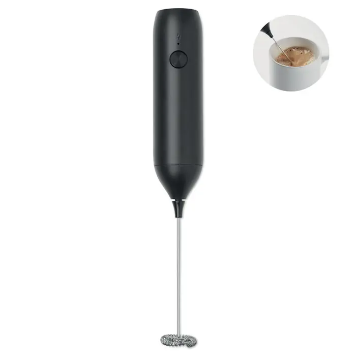 Espumador de leche eléctrico de mano en ABS con acabado mate. Batería integrada de 500 mAh de capacidad. Recargable por USB Type-C (cable incluido). Velocidad: 10 000 rpm.