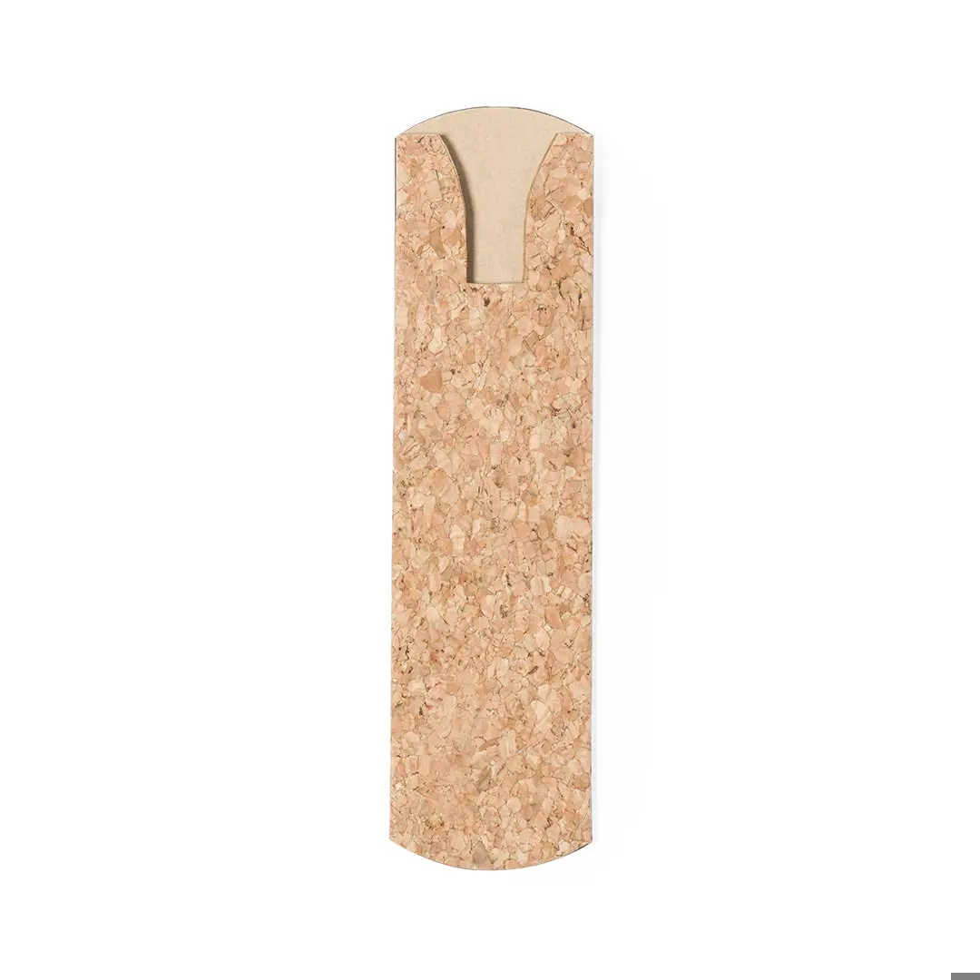 Funda de bolígrafo de línea nature. Fabricada en corcho natural y con amplia superficie de marcaje, especialmente diseñada para mostrar la publicidad del clip del bolígrafo.