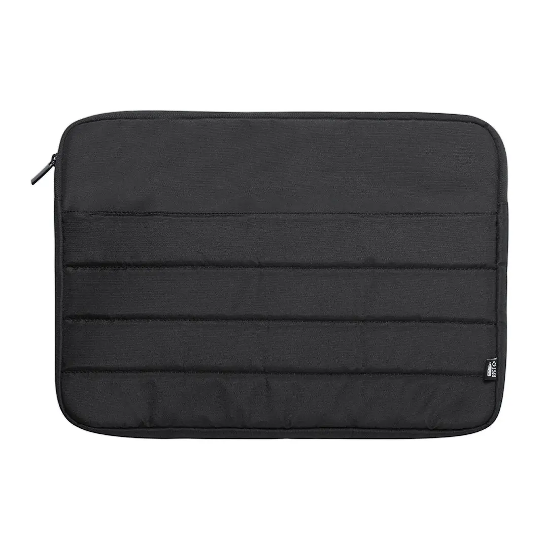 Funda para ordenador portátil de línea nature y acolchado total, para portátiles de hasta 15 pulgadas. Fabricada en resistente RPET 300D elaborado a partir de plástico reciclado, para así fomentar la reutilización de residuos plásticos y contribuir a la sostenibilidad del planeta. Bolsillo principal con cierre de cremallera y tirador metálico. Distintivo RPET en etiqueta.