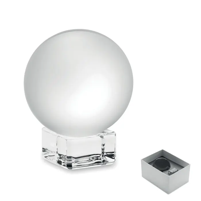 Premio o trofeo redondo de cristal con base. Presentado en caja de regalo.