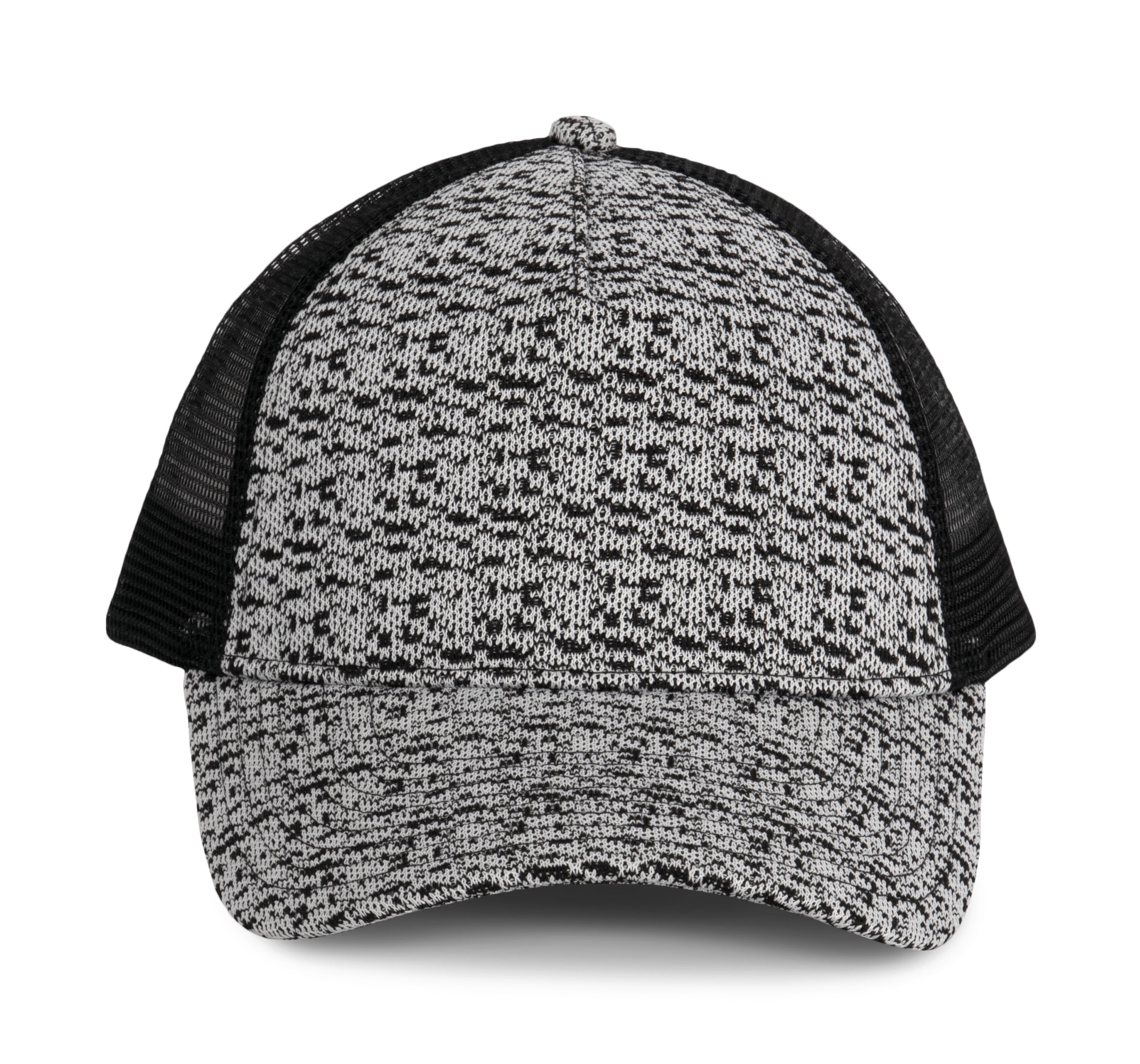 100% poliéster. Gorra Trucker - 5 paneles. Panel delantero en punto poliéster, aspecto rejilla de zapatillas deportivas. Rejilla poliéster. Lengüeta de ajuste de plástico.