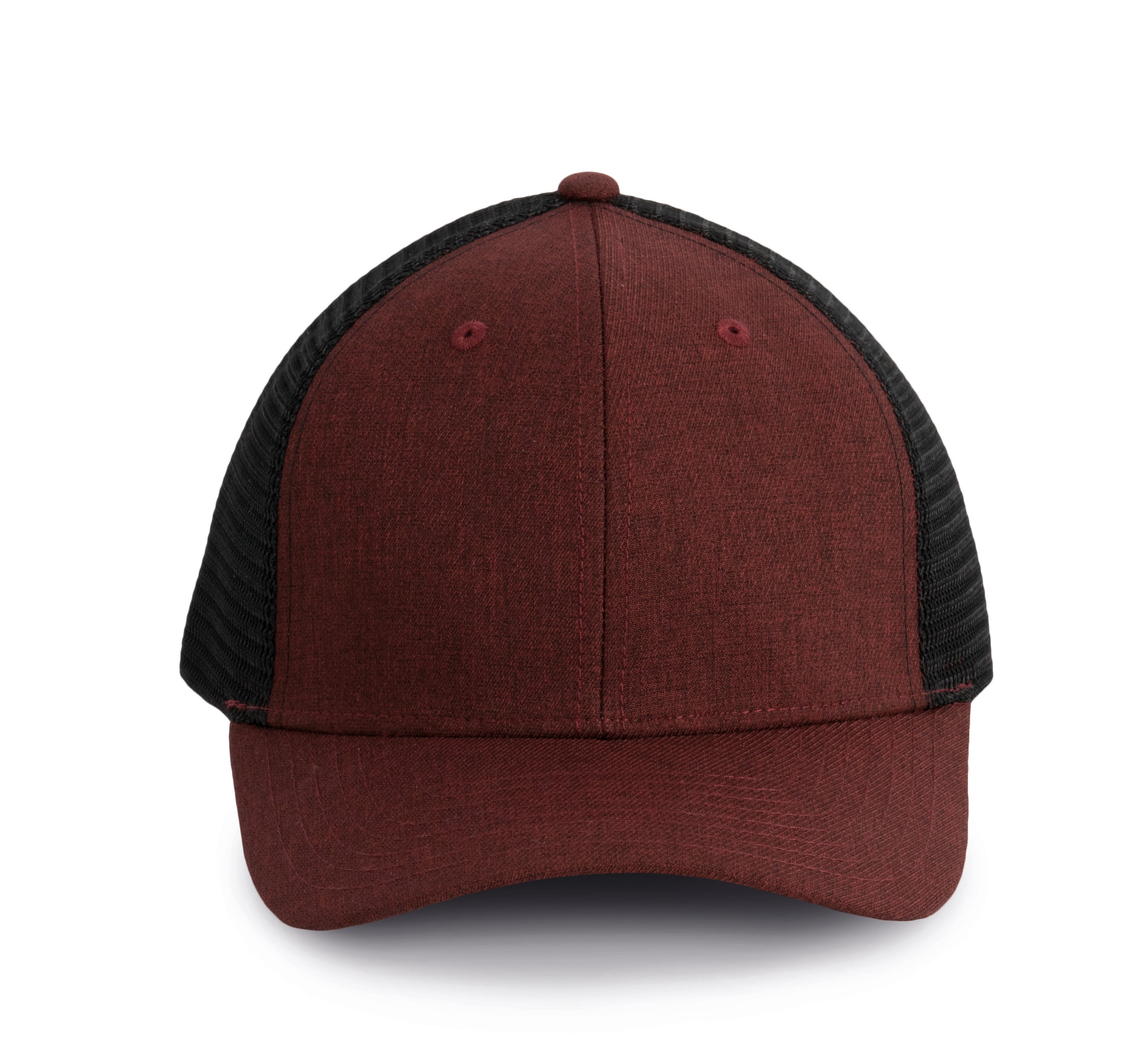 100% poliéster. Gorra Urban Trucker de 6 paneles con visera curva. Los paneles frontales y los paneles de rejilla son de poliéster. Lengüeta de ajuste de plástico.