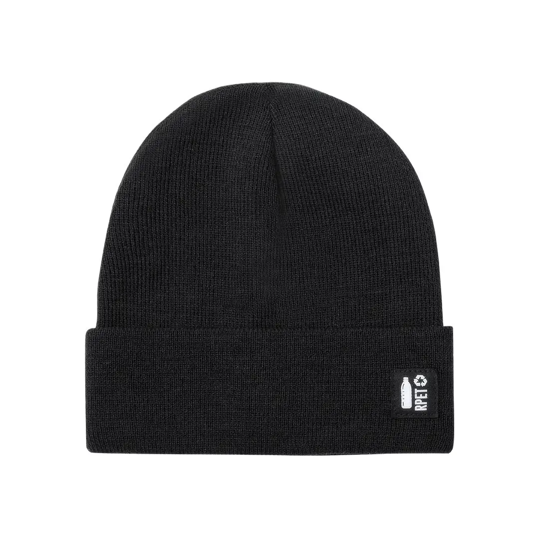 Suave y cálido gorro de punto de línea nature y en poliéster RPET, elaborado a partir de plástico reciclado para así fomentar la reutilización de residuos plásticos y contribuir a la sostenibilidad del planeta. Con dobladillo en frontal y disponible en variada gama de colores. Distintivo RPET en etiqueta exterior.