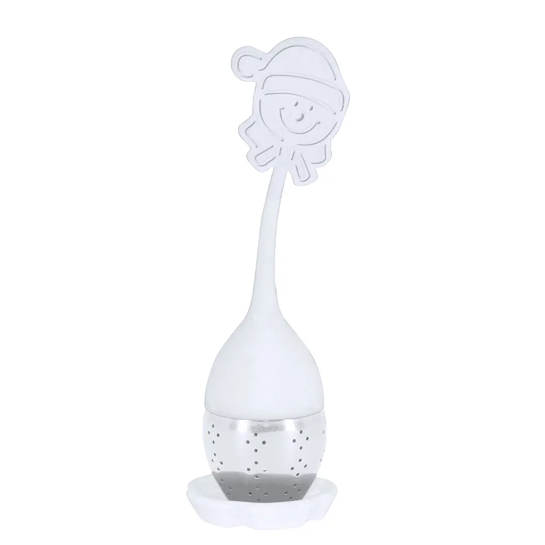Infusor de té con diseño navideño. Fabricado en silicona y acero inoxidable. Incluye base de silicona, ideal para apoyar el infusor tras su uso, evitando goteos y manteniendo limpia la superficie.